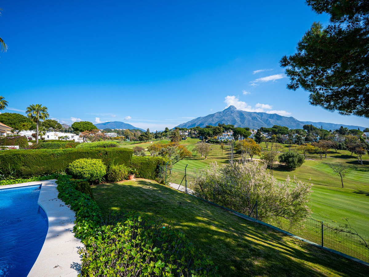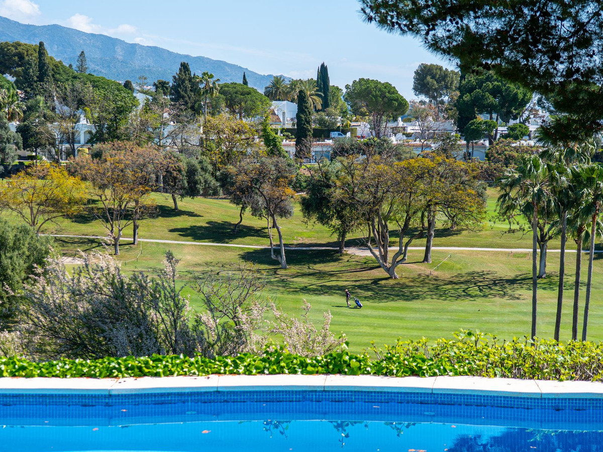Découvrez une villa andalouse d'exception, idéalement située en première ligne face à l'Aloha Golf Club, offrant une vue panoramique à couper le souffle qui s'étend sur les fairways jusqu'à l'emblématique La Concha.