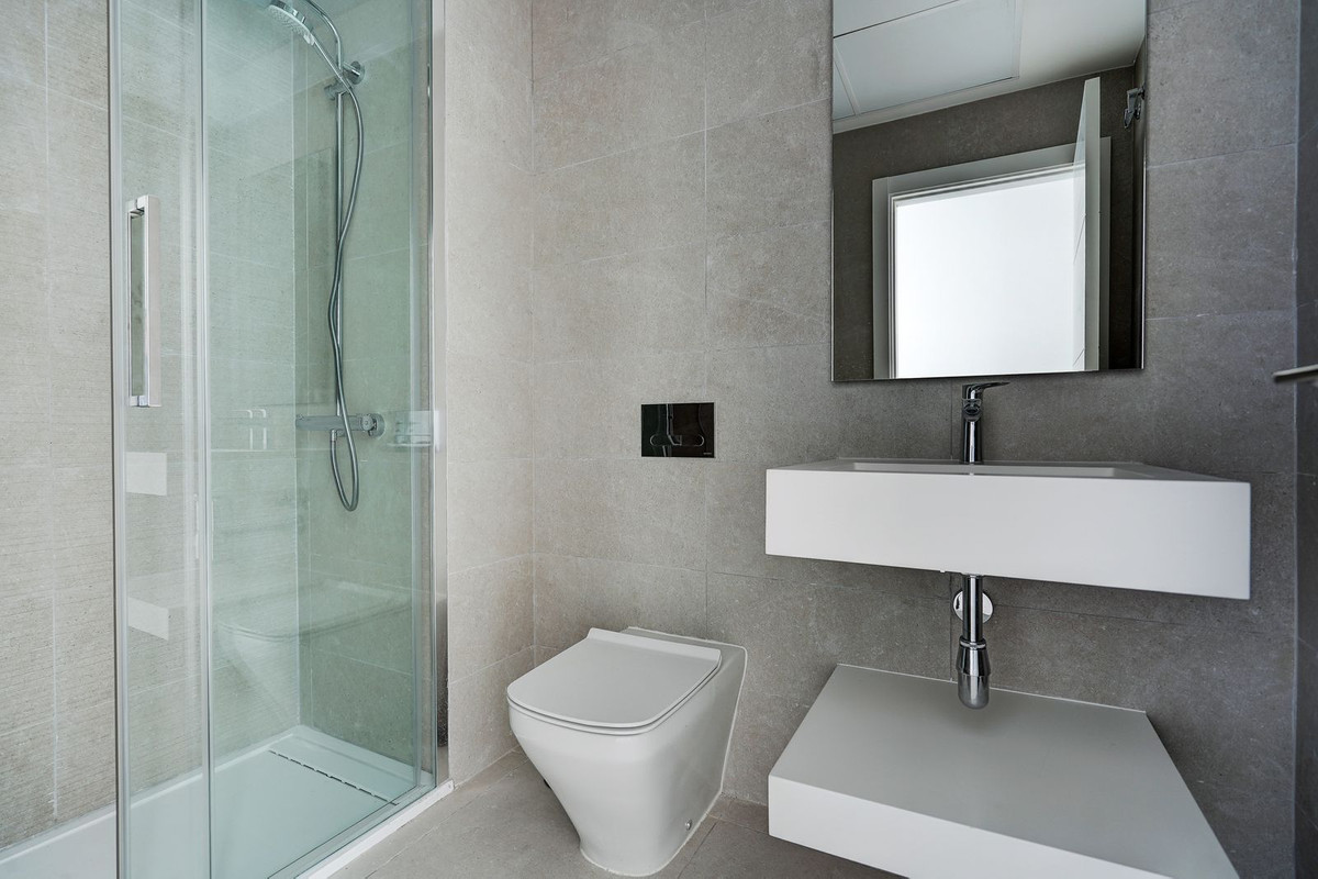 À l'intérieur, l'appartement offre un agencement moderne et lumineux, avec un vaste séjour et une cuisine entièrement équipée d'électroménager haut de gamme. De larges baies vitrées coulissantes relient harmonieusement l'intérieur à la terrasse, optimisant ainsi la lumière naturelle et la transition entre l'intérieur et l'extérieur. La suite parentale dispose d'une salle de bains privative et d'un accès direct à la terrasse, tandis que toutes les chambres sont dotées de placards intégrés et de finitions élégantes, comme un carrelage en porcelaine grand format. L'appartement bénéficie également de deux salles de bains complètes et d'un système de climatisation réversible performant.