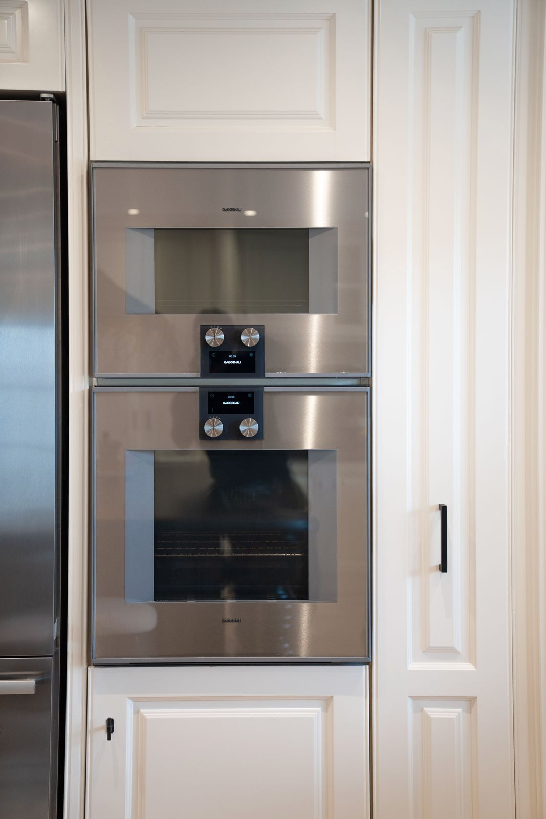 A grand entrance hall with impressive high ceilings and two bespoke wine cellars sets an elegant tone upon arrival. This leads into a spectacular 50 m² fully fitted designer kitchen, equipped with two premium Gaggenau appliances, including four ovens in the kitchen, and a charming dining area with a fireplace—perfect for hosting unforgettable gatherings. A separate back kitchen with laundry room adds practicality.