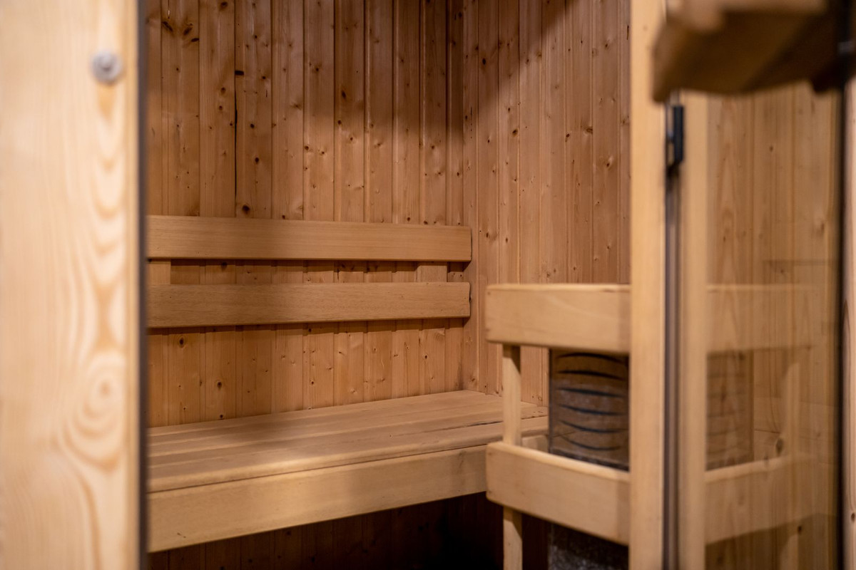 Espace spa comprenant une piscine intérieure chauffée, un sauna et un jacuzzi relaxant.