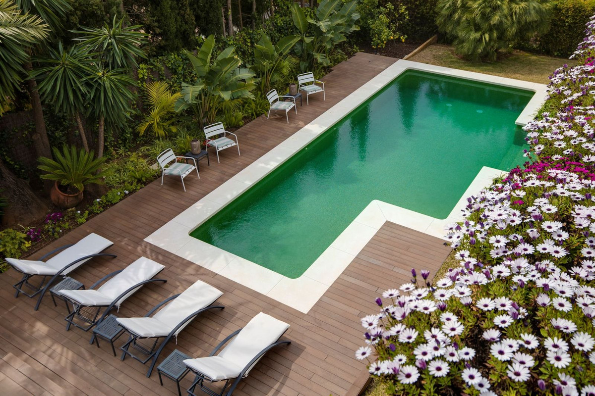 Le jardin paysager mature préserve l'intimité et ajoute de la profondeur au site. Depuis l'étage supérieur, la villa bénéficie d'une vue dégagée sur la mer et la verdure environnante, tandis que le solarium sur le toit offre un panorama à 360° embrassant la Méditerranée, les montagnes et le paysage si particulier de la Sierra Blanca.