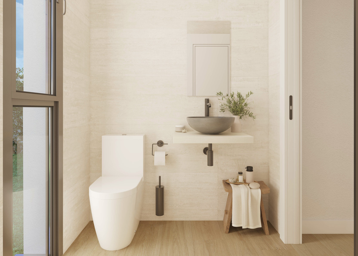 Cette maison comprend trois chambres, chacune dotée d'une salle de bains privative et orientée à l'est, ce qui lui assure une belle luminosité en début de journée. Les finitions sont signées Porcelanosa, témoignant d'un souci constant de la qualité et du design. Elle intègre également un système domotique permettant de contrôler facilement différents aspects de la maison.