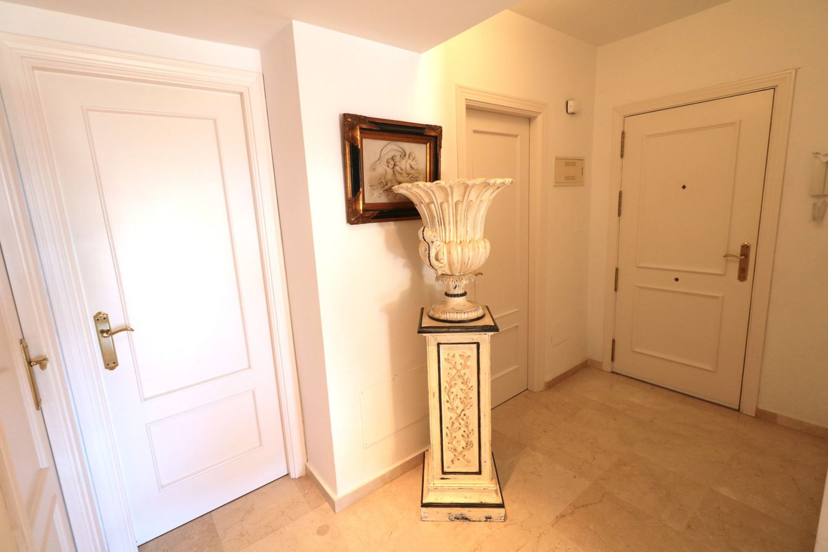 Vaste appartement de plain-pied dans le quartier recherché de Selwo, au sein d'une urbanisation fermée et très bien entretenue, à seulement 5 minutes en voiture de la plage, du restaurant Sonora Beach et des terrains de golf, et à 10 minutes en voiture d'Estepona ou du célèbre Puerto Banus.