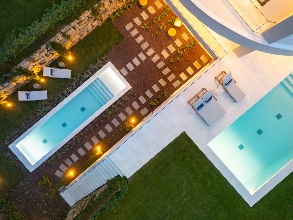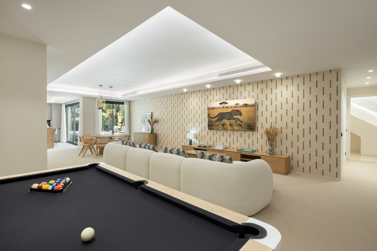 Située dans le quartier résidentiel exclusif de La Cerquilla, cette villa neuve d'exception est un modèle de luxe contemporain. Répartie sur quatre niveaux agencés avec soin, elle offre cinq chambres spacieuses et sept salles de bains élégamment aménagées. Une entrée majestueuse à double hauteur confère d'emblée une impression de grandeur, inondant la maison de lumière naturelle et donnant le ton à des intérieurs raffinés. La pièce de vie principale, agrémentée d'une cheminée élégante, s'ouvre harmonieusement sur une cuisine américaine, conçue aussi bien pour le quotidien que pour recevoir avec raffinement. La propriété bénéficie également d'un système domotique de pointe et d'un système de renouvellement d'air automatique performant, garantissant un confort optimal, une efficacité énergétique maximale et une qualité d'air irréprochable.