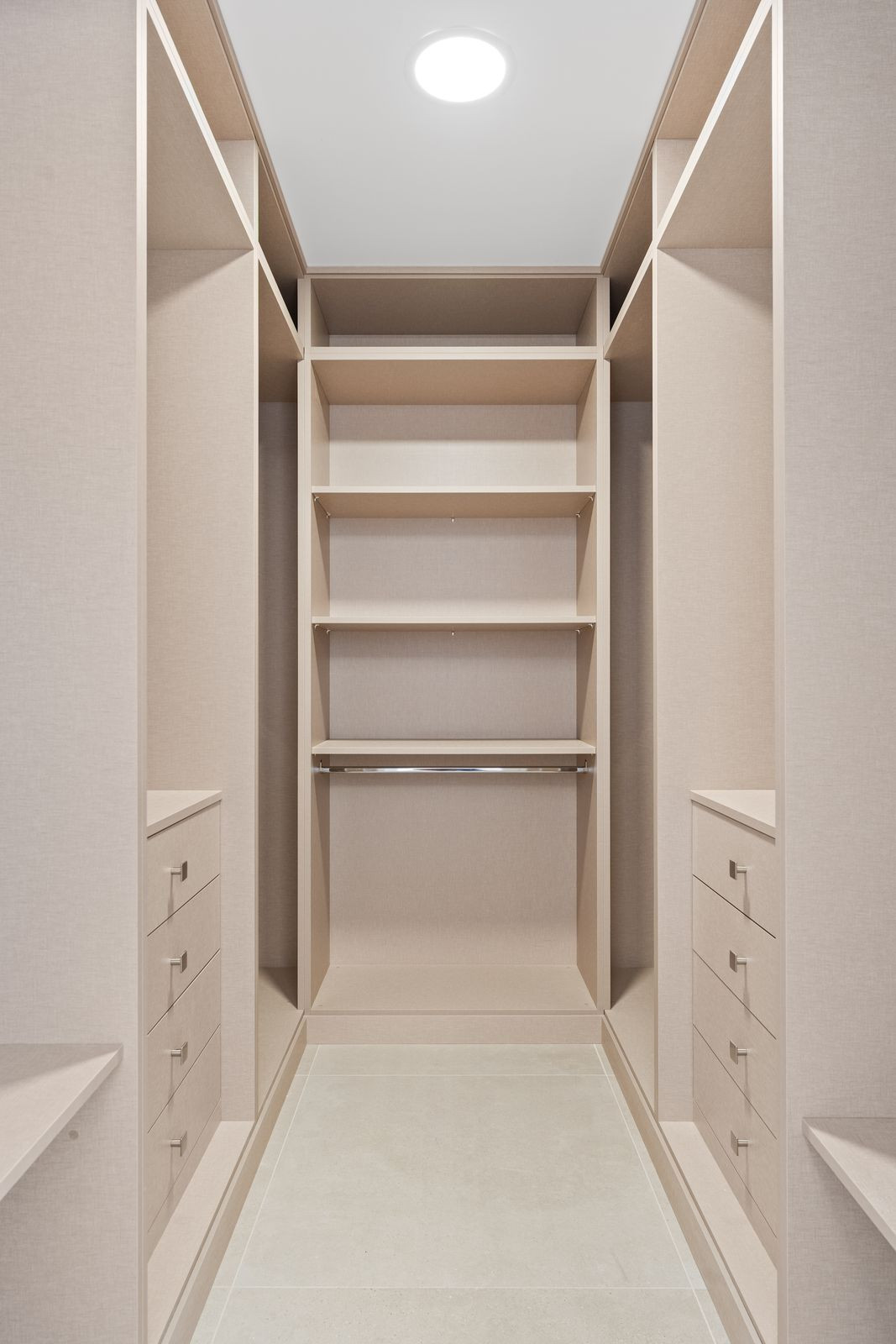 Les salles de bains sont équipées d'appareils sanitaires Galassia et de robinetterie Nobili, alliant fonctionnalité et design raffiné. Le même soin a été apporté aux détails intérieurs : portes laquées blanches et placards aménagés avec systèmes de tiroirs intégrés, pour un style à la fois pratique et élégant.