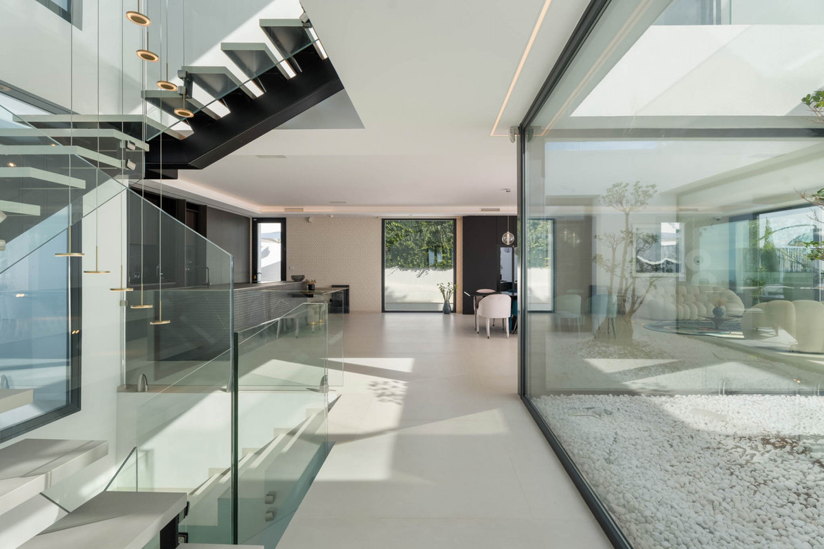 Cette villa d'architecte à Paraiso Alto se présente comme une résidence contemporaine conçue pour ceux qui recherchent intimité, grands espaces et une connexion directe avec la nature environnante. Sa position dominante offre des vues imprenables sur le golf d'El Paraíso, la Méditerranée, Gibraltar, la côte africaine et le mont La Concha depuis différentes pièces et espaces extérieurs, créant ainsi un cadre visuel exceptionnel.