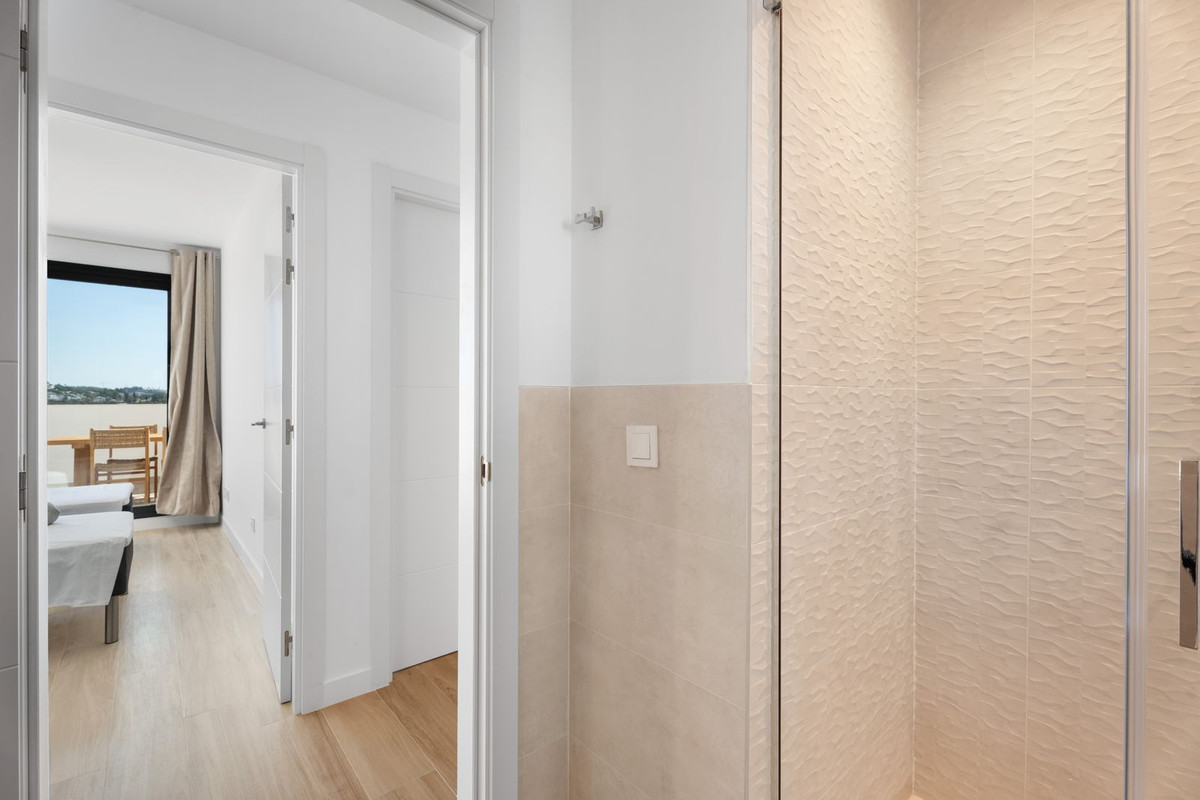 Située au premier étage du bloc 1 de Navigolf Suites, elle offre une vue imprenable sur La Cala de Mijas, le golf de La Noria et la mer.