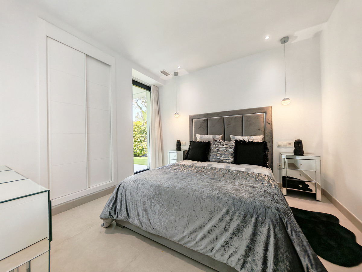 Villa à vendre à La Resina Golf, Estepona, offrant 5 chambres, 4 salles de bains (dont une suite parentale), une orientation ouest, une piscine privée, un garage double et un jardin privatif. Surface habitable : 308,46 m², terrain : 521,21 m², surface utile : 308,46 m², terrasse : 95 m². Ce logement offre les prestations suivantes : accès direct au golf, climatisation, entièrement meublé, cuisine équipée, buanderie, cheminée, jacuzzi, sous-sol, chambre d’amis, débarras, salle de sport, alarme, solarium, entrée sécurisée, double vitrage, interphone vidéo, tout neuf, salle à manger, barbecue, service de sécurité 24h/24, toilettes invités, terrasse privée, cuisine équipée, salon, bureau, vue sur la montagne, vue sur le golf, piscine chauffée, système d’irrigation automatique, domotique, système audio surround Dolby, buanderie, internet Wi-Fi, terrasse couverte, placards intégrés, vue sur le jardin, vue sur la piscine, vue panoramique, salle de cinéma, chauffage au sol (salles de bains), cave à vin, à proximité d’une aire de jeux pour enfants, à proximité de la mer/plage, à proximité du golf, terrasse non couverte, salle de jeux, portes vitrées, salle à manger séparée, cuisine ouverte, balcon, système de refroidissement au plafond, à proximité des écoles, appartement d’invités, au sein du complexe de golf, bureau et animaux domestiques admis.