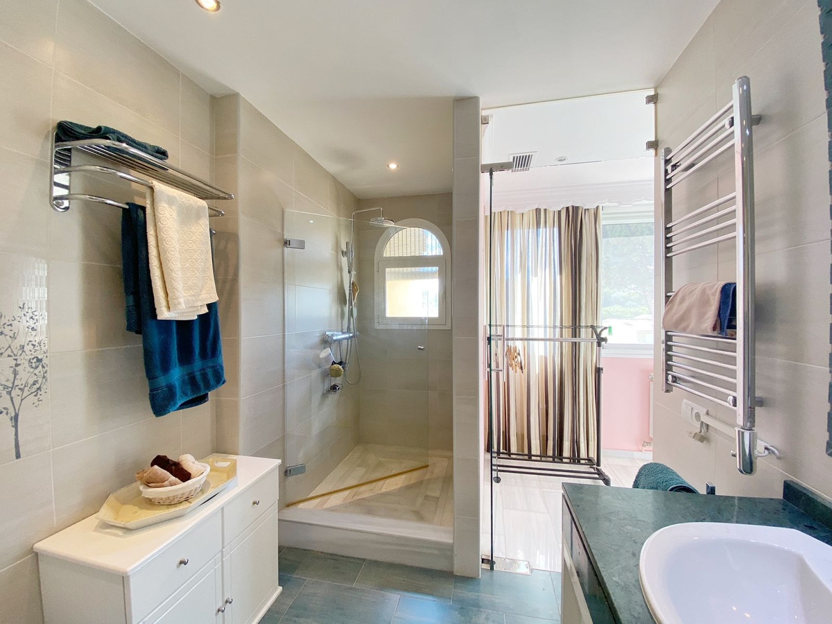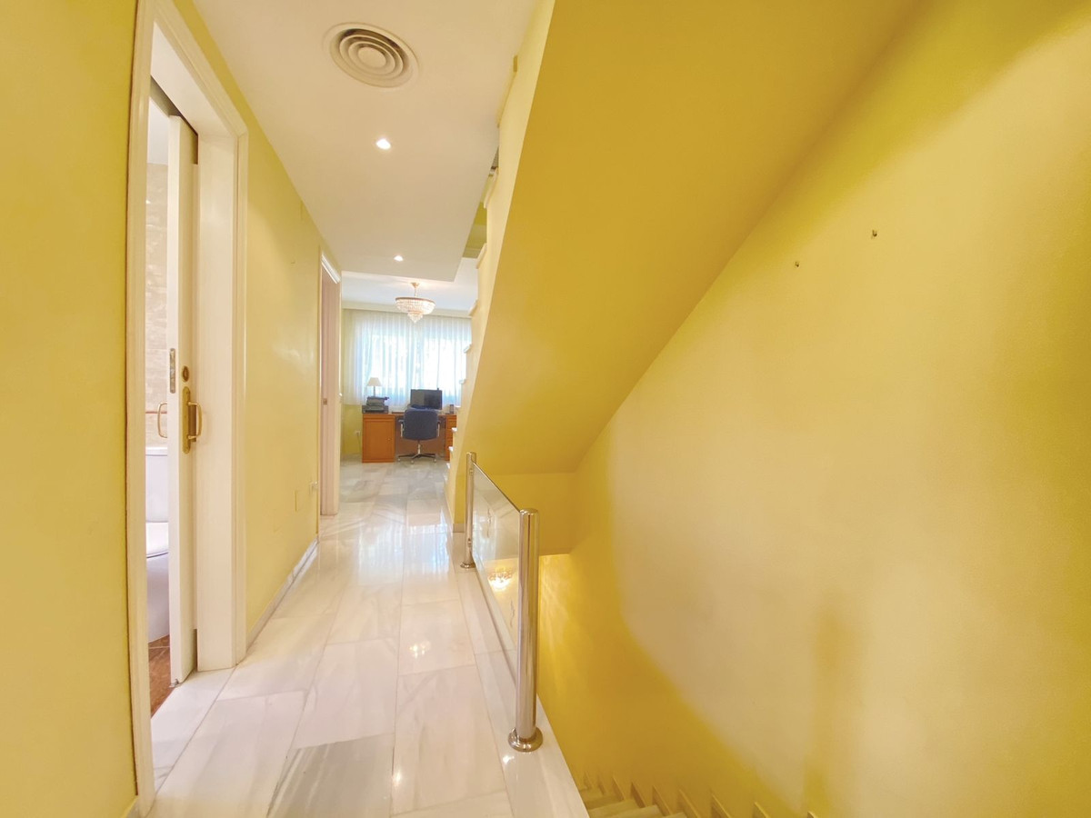 It comprises of a spacious living/dining room with fireplace and direct access to a lovely Southwest facing terrace. The ground floor also has a fully equipped kitchen and a guest toilet. On the upper floor there are 3 bedrooms and 2 bathrooms, one en-suite with access to a private terrace and a staircase that takes you up to the solarium.