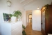 Bright living room with fireplace, modern kitchen with dining area, 2 bedrooms, dressing room, and a spacious bathroom with walk-in shower.
