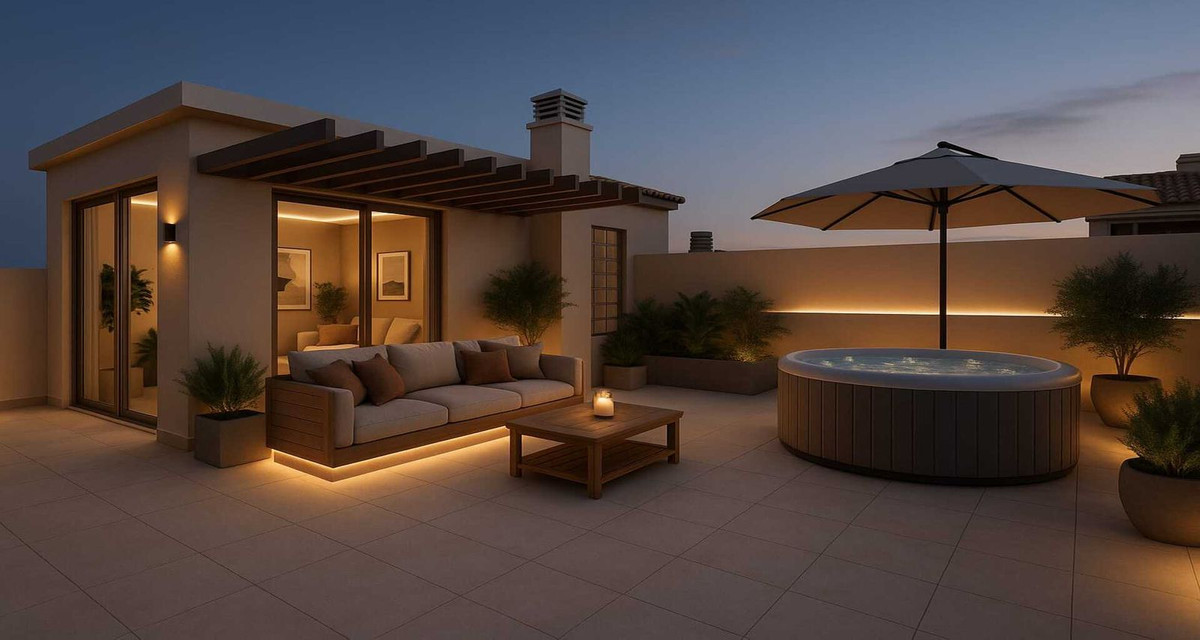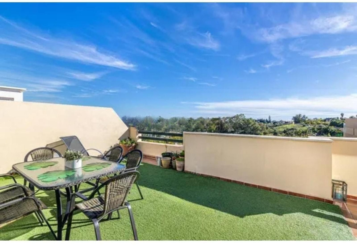 Discover this stunning 3-bedroom, 2-bathroom penthouse duplex located in the sought-after Selwo area of Estepona. Boasting a spacious 30 m² terrace with elegant glass curtains and a 60 m² solarium featuring a built-in charcoal barbecue, this home is designed for year-round outdoor living.