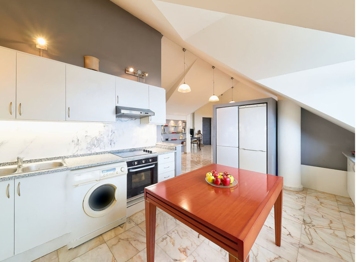 The apartment consists of two independent levels. Each floor has its own kitchen, living room, and terrace, offering full privacy for residents or the option to rent out one level separately.
