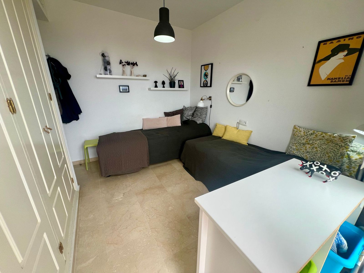 The highlight of this duplex is the exceptionally large wrap-around terrace on the upper level, perfect for entertaining or simply soaking in the stunning views of the sea, mountains, and golf course. With 106 m² constructed and 90 m² usable space, this home offers ample room for relaxation.