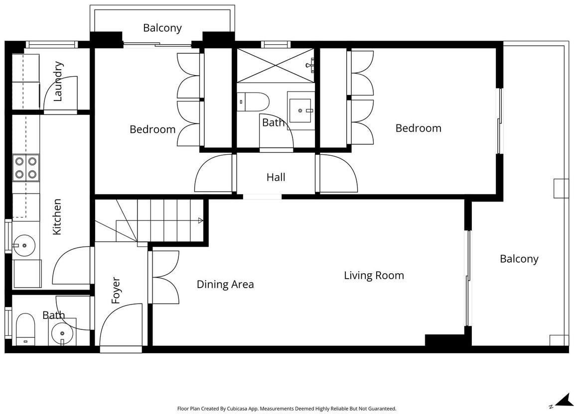 Step into an open hallway that leads to a modern kitchen, two generously sized bedrooms, one bath room & one guest toilet, and a cozy living room with direct access to one of the two inviting terraces.
