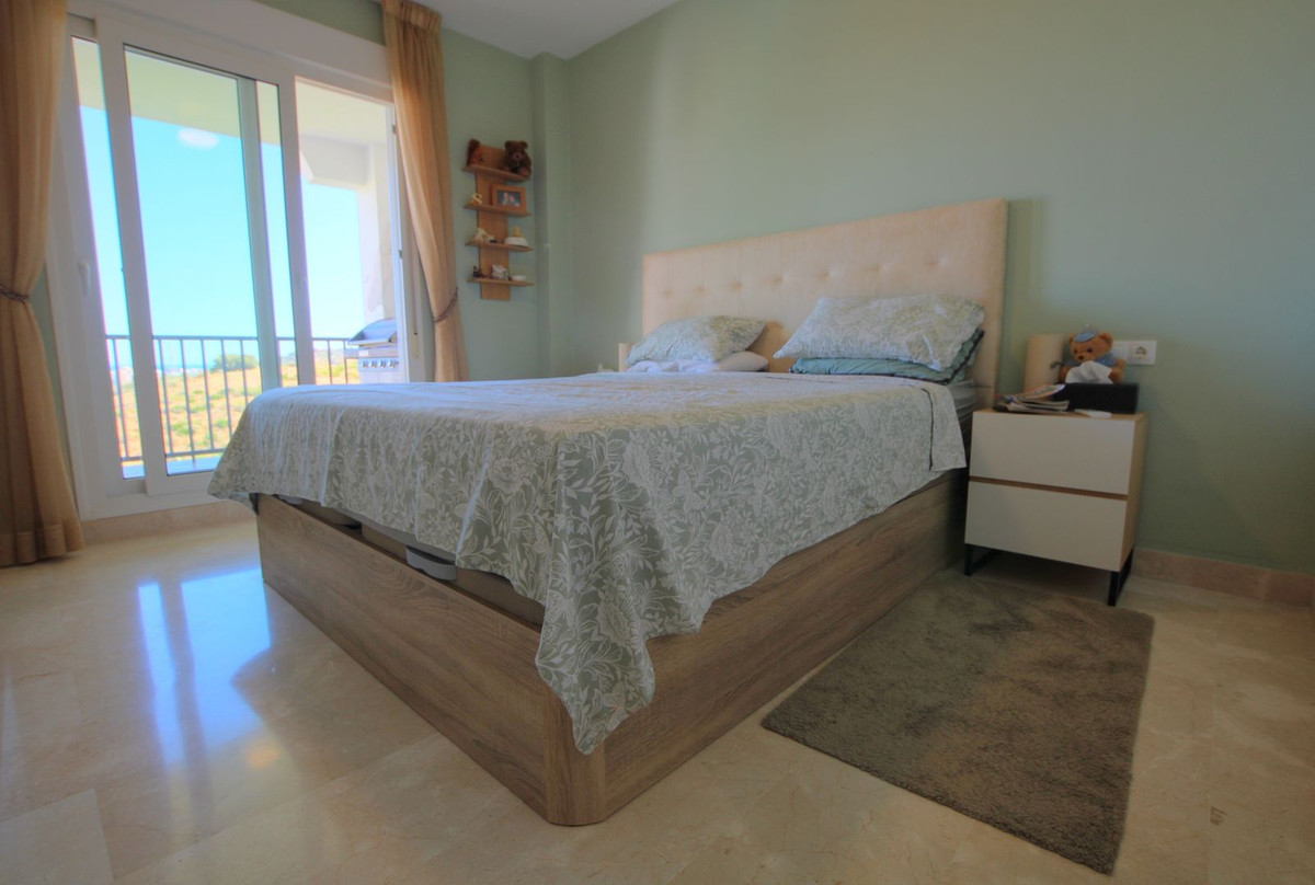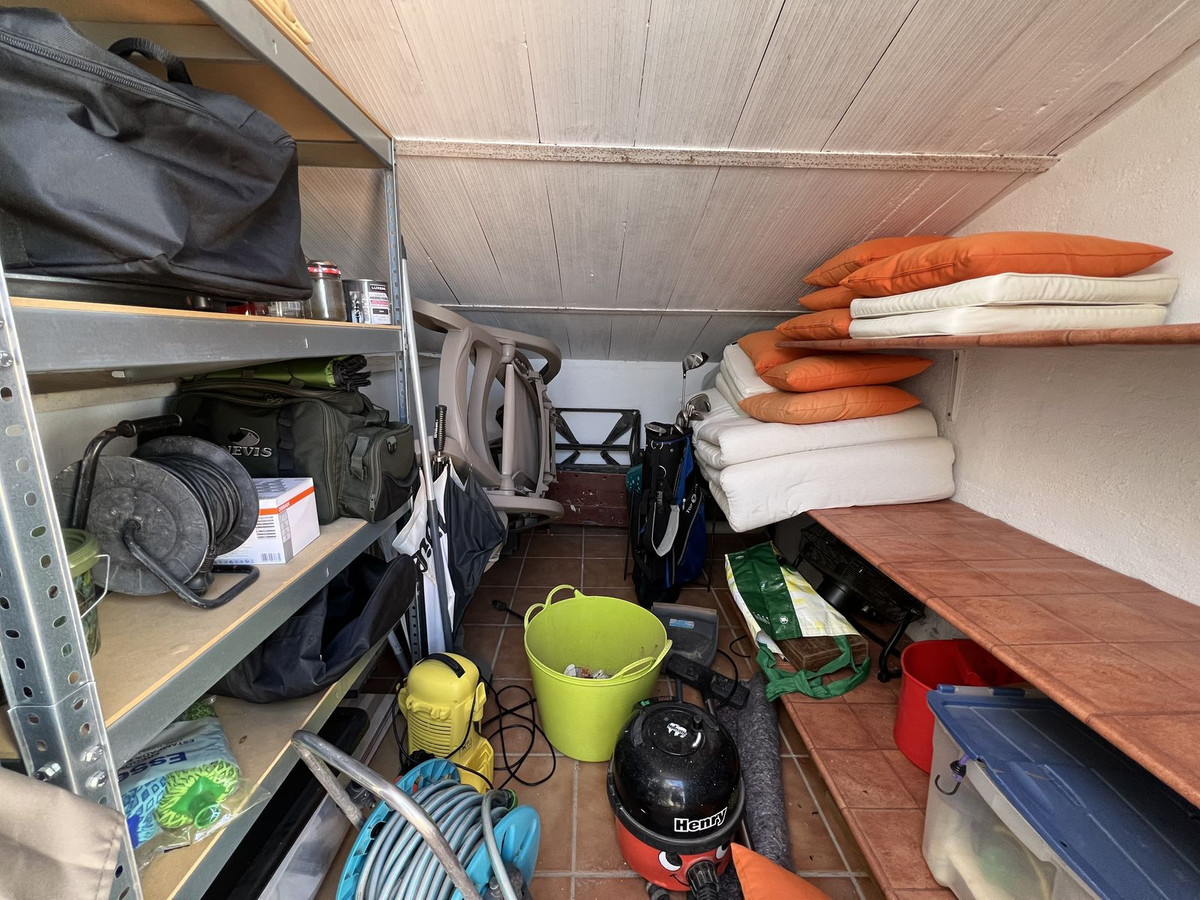 This wonderful penthouse apartment is well located at just a short drive to the beaches and amenities of Fuengirola and La Cala. The gated community has a super big communal pool and garden area, and the property is accessed via a lift. The interior is made up of a large kitchen which is semi open plan to the living dining area. There is a large terrace with panoramic views of the sea and the mountains. There are 3 large double bedrooms, 2 bathrooms (one of which is ensuite), and upstairs is a huge roof terrace with even better views. There is a very practical built in storage unit on the roof terrace, and the very low running costs make this property a real bargain!