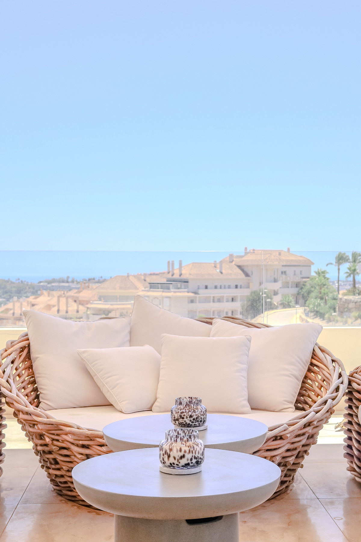 Les chambres principales et les chambres d'amis ont accès à une terrasse couverte, une piscine et un jardin privé, donnant à l'appartement l'atmosphère d'une maison privée. L'emplacement privilégié est à proximité du Lago de Las Tortugas, avec des terrains de golf tels que le Real Club de Golf Las Brisas, le Los Naranjos Golf Club et l'Aloha Golf Club à proximité.