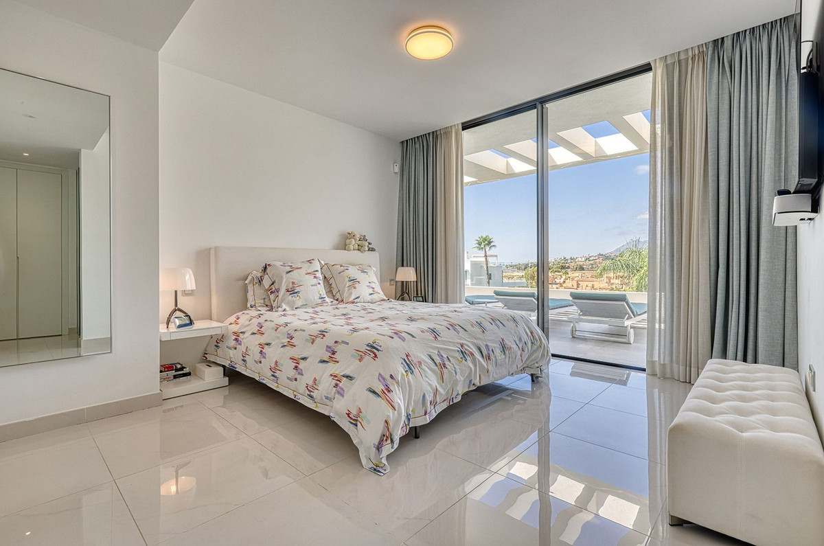 Luxueux appartement duplex de 4 chambres et 3 salles de bains, situé près de Benahavis. Situé au premier étage, il bénéficie d'un accès direct depuis l'entrée. Dès votre arrivée, vous serez immédiatement séduit par la vue magnifique et l'immense terrasse, véritable espace de vie extérieur. Séjour, cuisine ouverte, salle à manger, buanderie et toilettes invités. À ce niveau se trouve également une grande chambre double avec salle de bains attenante et nombreux rangements.