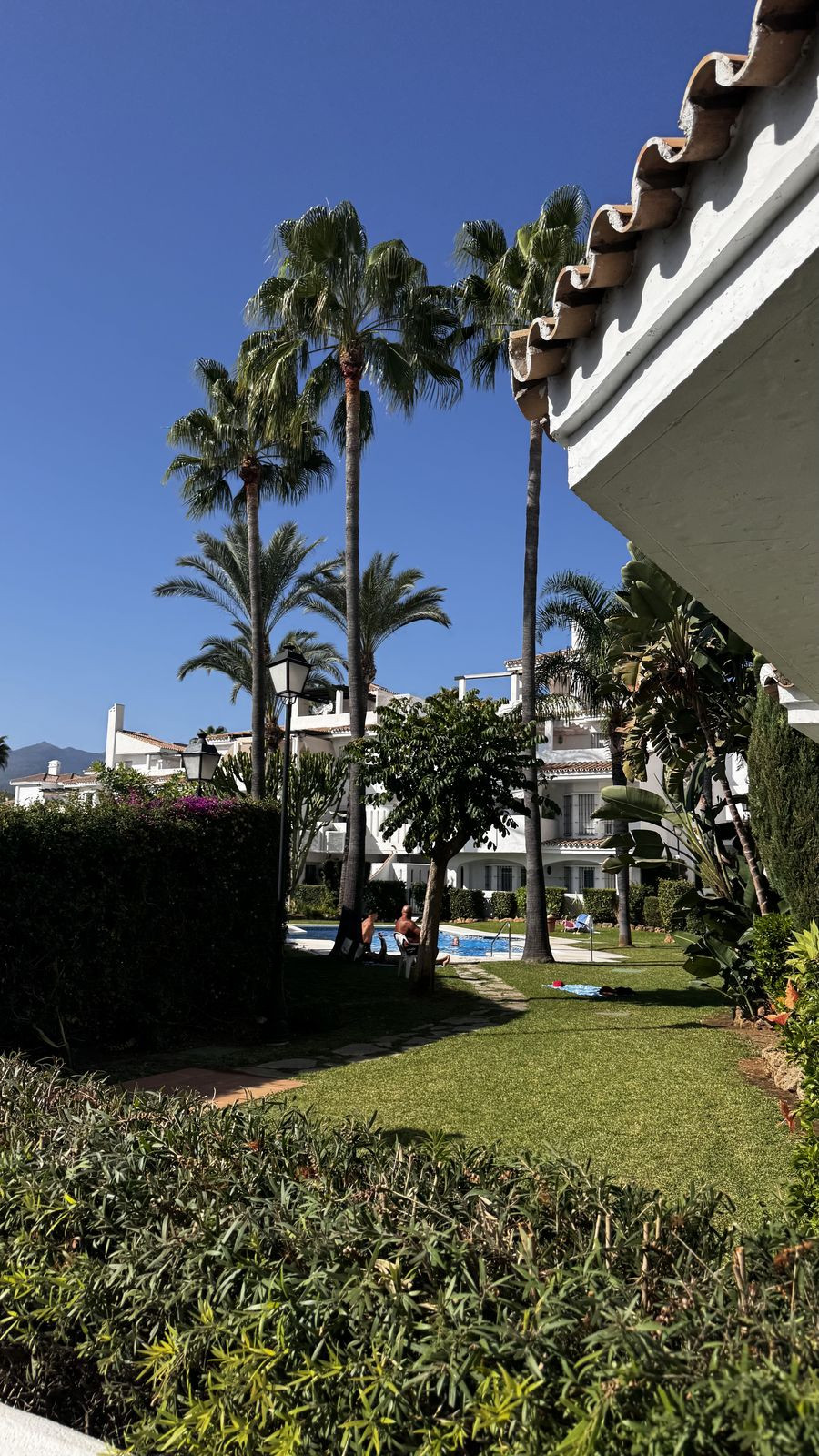 Située au rez-de-chaussée d'un complexe bien entretenu avec des jardins luxuriants et une grande piscine commune, la propriété offre un mélange parfait de confort moderne et de style méditerranéen.