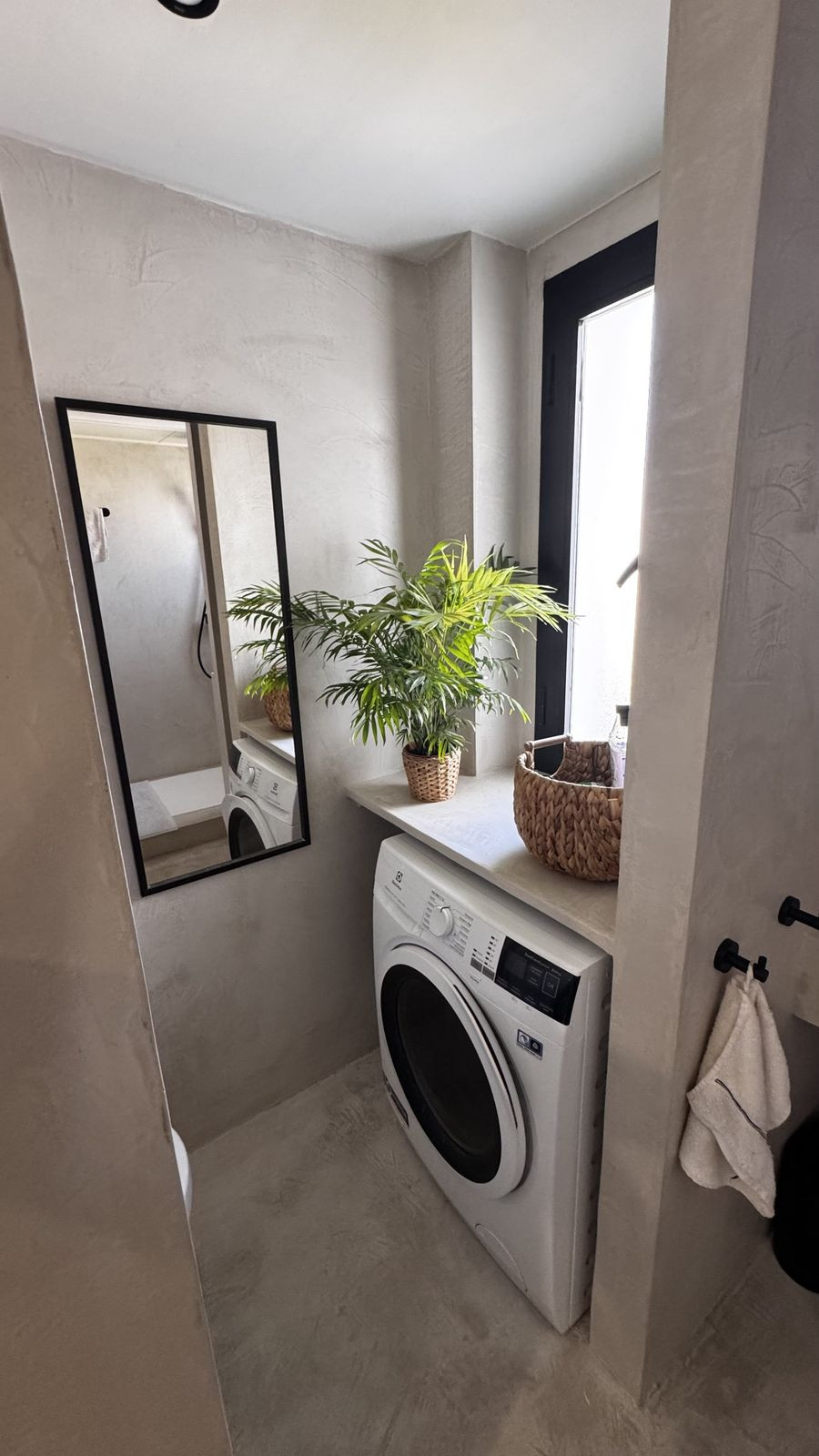 L'appartement comprend trois chambres spacieuses, dont une suite parentale avec salle de bain attenante, tandis que les deux autres partagent une deuxième salle de bain rénovée avec goût. Les deux salles de bain sont équipées de radiateurs et la maison bénéficie de la climatisation réversible.
