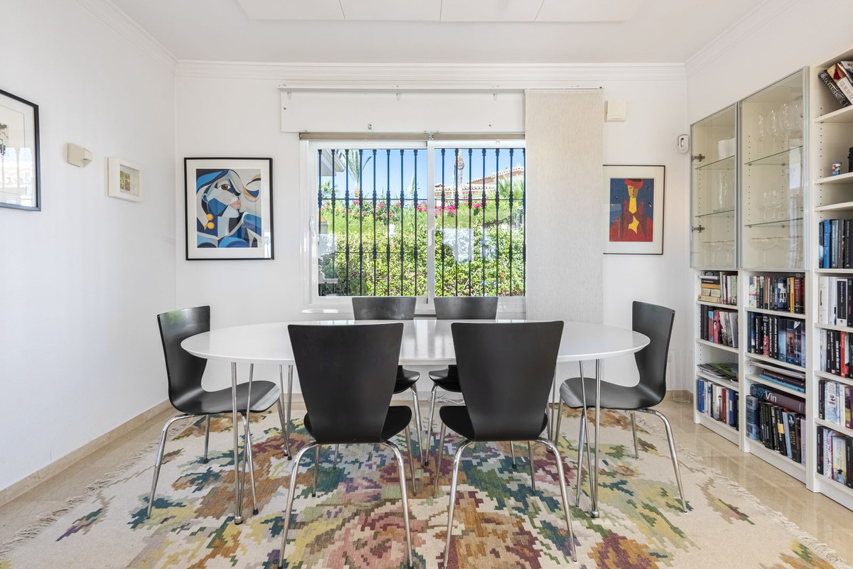 Bienvenue dans cette magnifique villa de plain-pied, idéalement située dans le quartier prisé de Mijas Golf. Vous profiterez d'une vue dégagée sur le jardin luxuriant et la verdure du parcours de golf ; un havre de paix où la tranquillité et le chant des oiseaux créent une atmosphère unique.