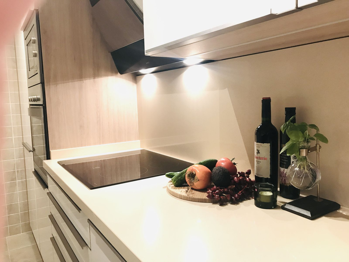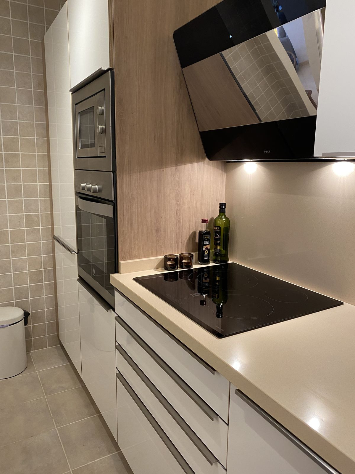 La cuisine moderne est entièrement équipée et fonctionnelle. La chambre principale dispose de sa propre salle de bain et de nombreux rangements, tandis que la chambre d'amis est spacieuse et dispose également de placards. Les toilettes invités servent actuellement de débarras, mais peuvent facilement être rénovées. Un parking souterrain avec ascenseur est inclus dans le prix, pour un quotidien confortable et sécurisé.