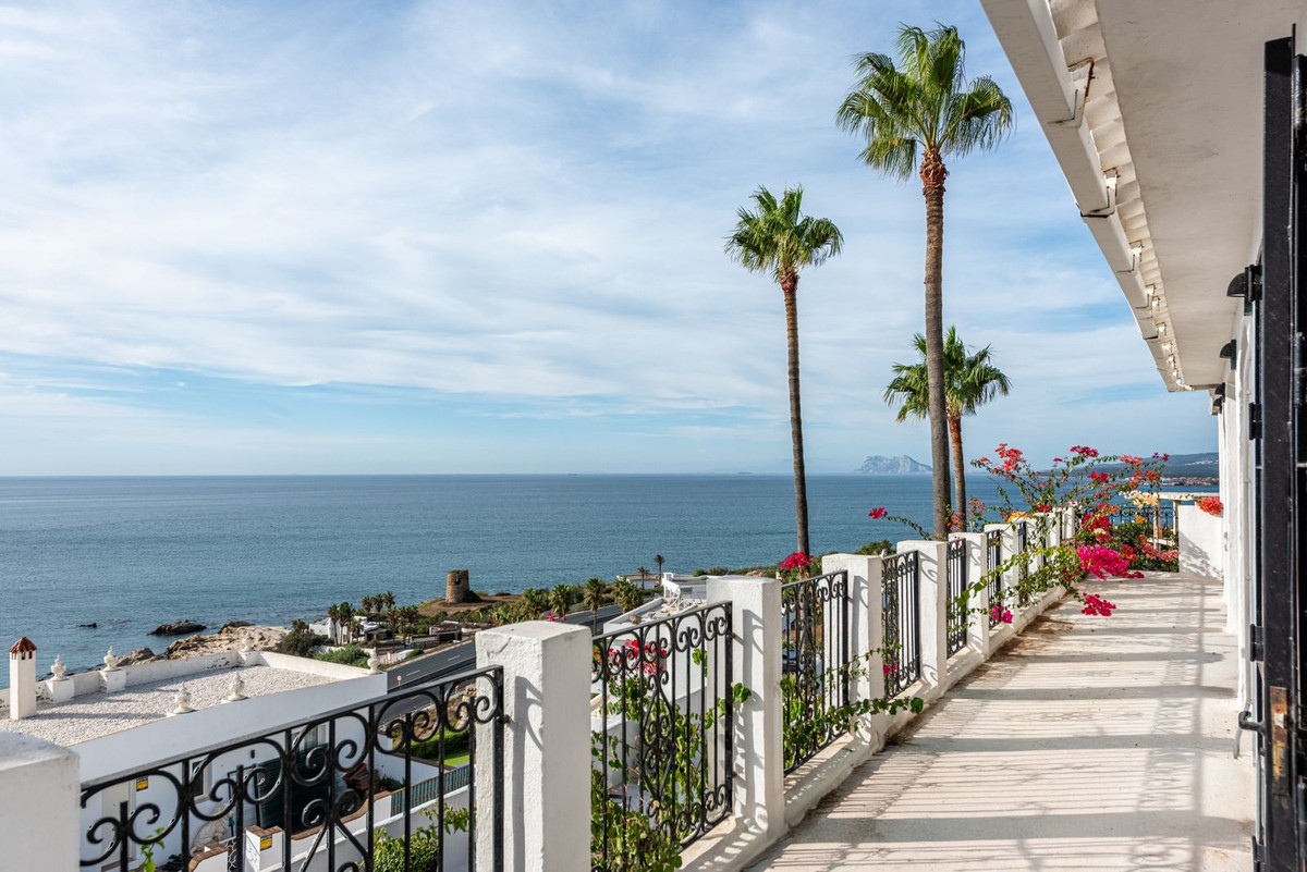Un garage double avec accès direct à la rue offre un stationnement pratique, et la maison dispose de nombreux rangements. La propriété est située dans une résidence sécurisée et bien entretenue, à seulement cinq minutes de Sotogrande et de La Duquesa, et à deux minutes de la charmante Torre de la Sal.