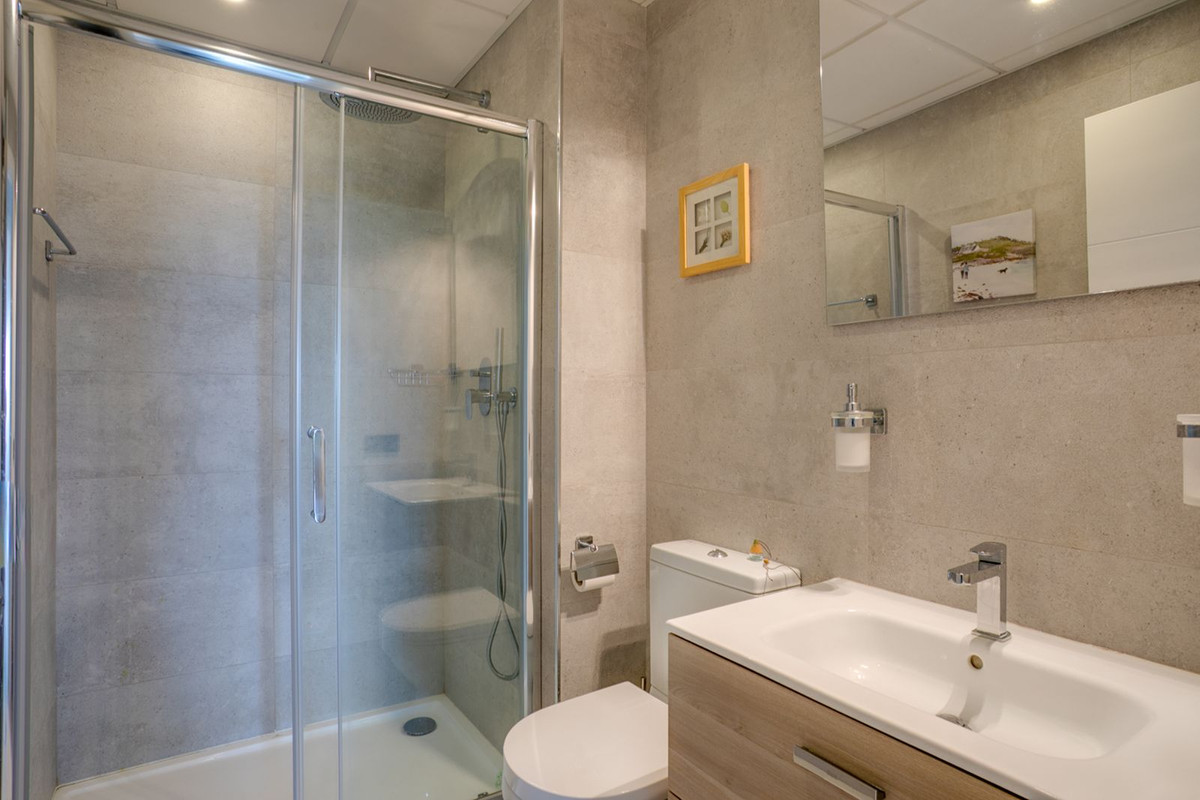 Dès l'entrée, vous serez accueilli par un magnifique séjour avec une cuisine semi-ouverte entièrement équipée. L'espace s'ouvre harmonieusement sur une grande terrasse couverte, fermée par des rideaux de verre, vous permettant de profiter pleinement de la vie en plein air toute l'année. De là, vous profiterez d'une vue panoramique sur la mer Méditerranée, les luxuriants jardins communs, les piscines et les majestueuses montagnes d'Estepona. Cette magnifique propriété, située en bout de parcelle et sans vis-à-vis, est située dans un immeuble de seulement 5 logements.