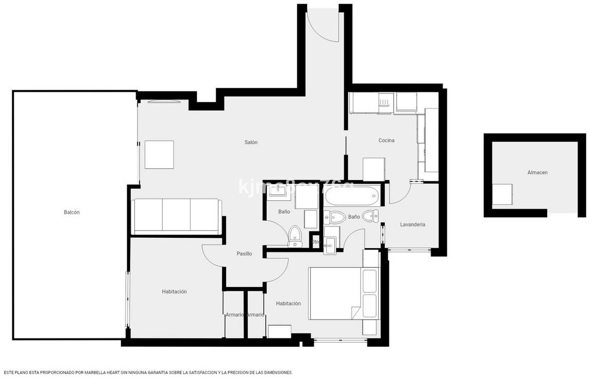 Cette propriété très chaleureuse comprend une entrée, un séjour/salle à manger avec cheminée et accès à la terrasse couverte, une cuisine entièrement équipée avec buanderie, une suite parentale avec salle de bains attenante et placards intégrés, ainsi qu'une deuxième chambre et une salle de bains pour invités. Une partie de la terrasse a été clôturée pour servir de troisième chambre. Un garage et un débarras sont inclus dans le prix.