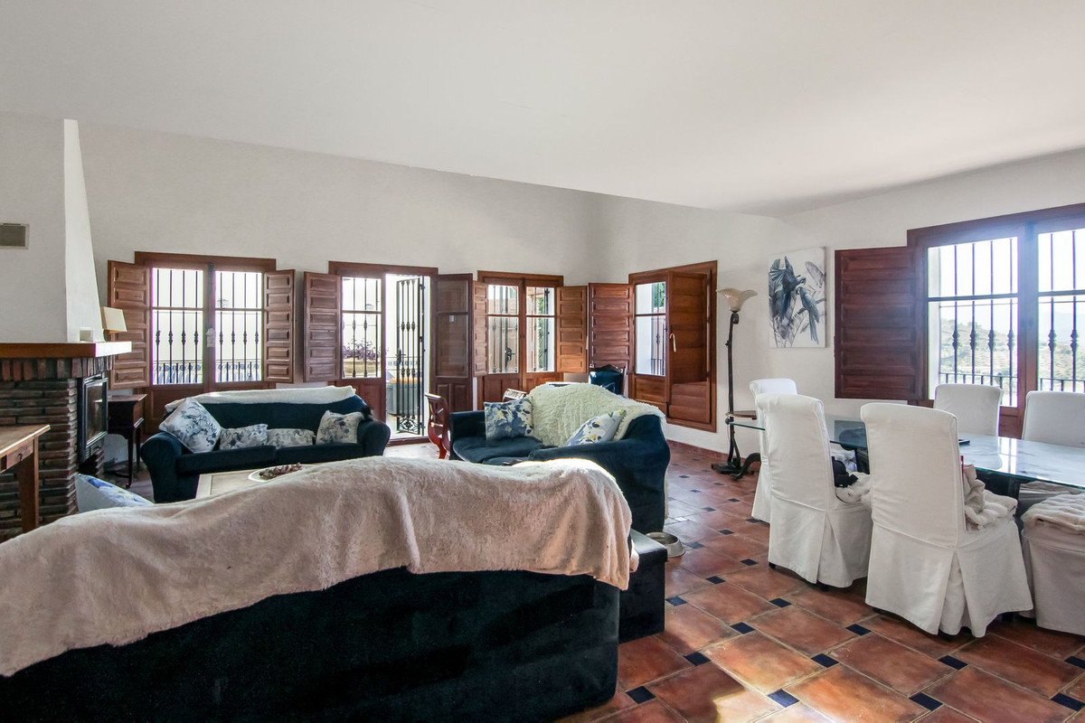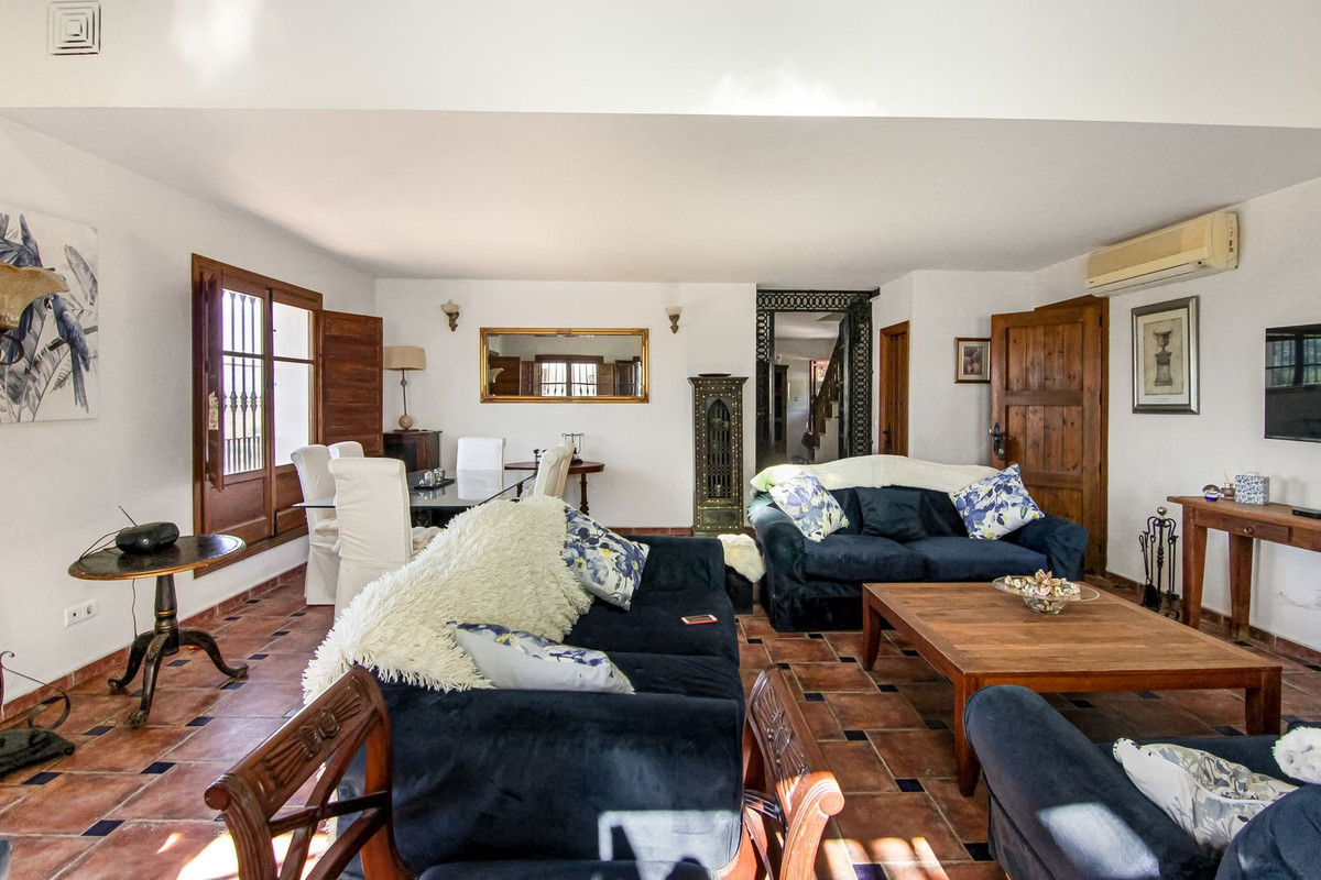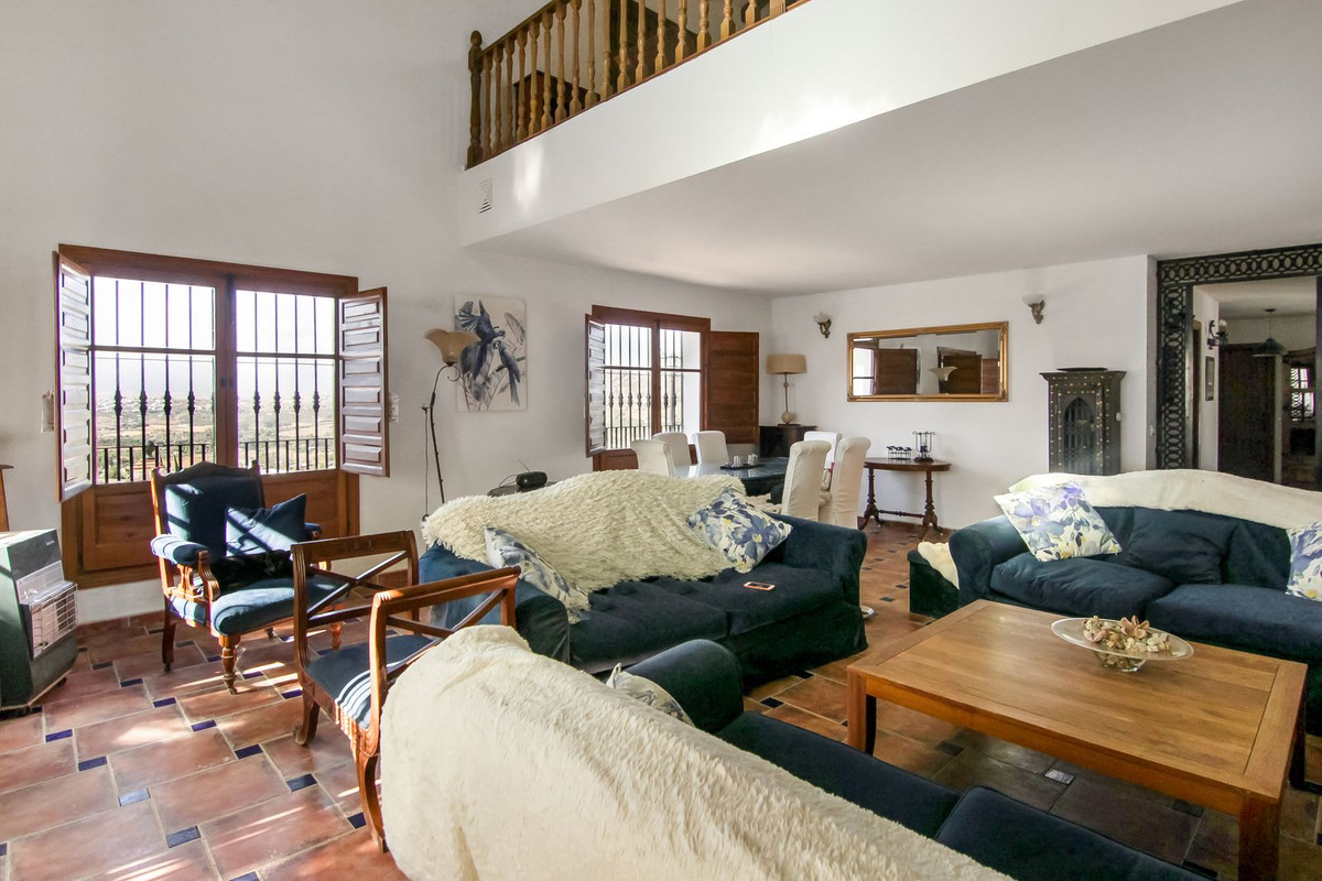 Le salon est à couper le souffle, très spacieux, avec de hauts plafonds et une grande cheminée. De belles fenêtres à cadre en bois de style rustique et des volets intérieurs offrent une vue sur la campagne. Il est baigné de lumière naturelle et donne accès au patio andalou, d'où l'on accède à la terrasse. Il est possible d'aménager une piscine. De nombreuses possibilités s'offrent à vous.