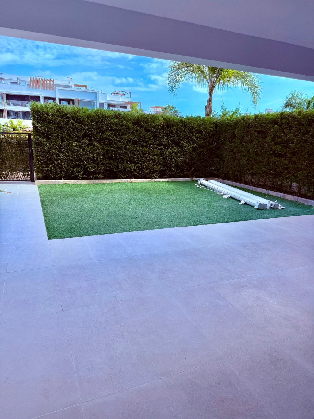Magnifique appartement de 2 chambres et 2 salles de bain au rez-de-chaussée, avec grand jardin privé et deux terrasses, à Cancelada. En parfait état. Parking souterrain et cave inclus dans le prix. Magnifique jardin commun avec piscine. À quelques pas des commerces et de la plage.