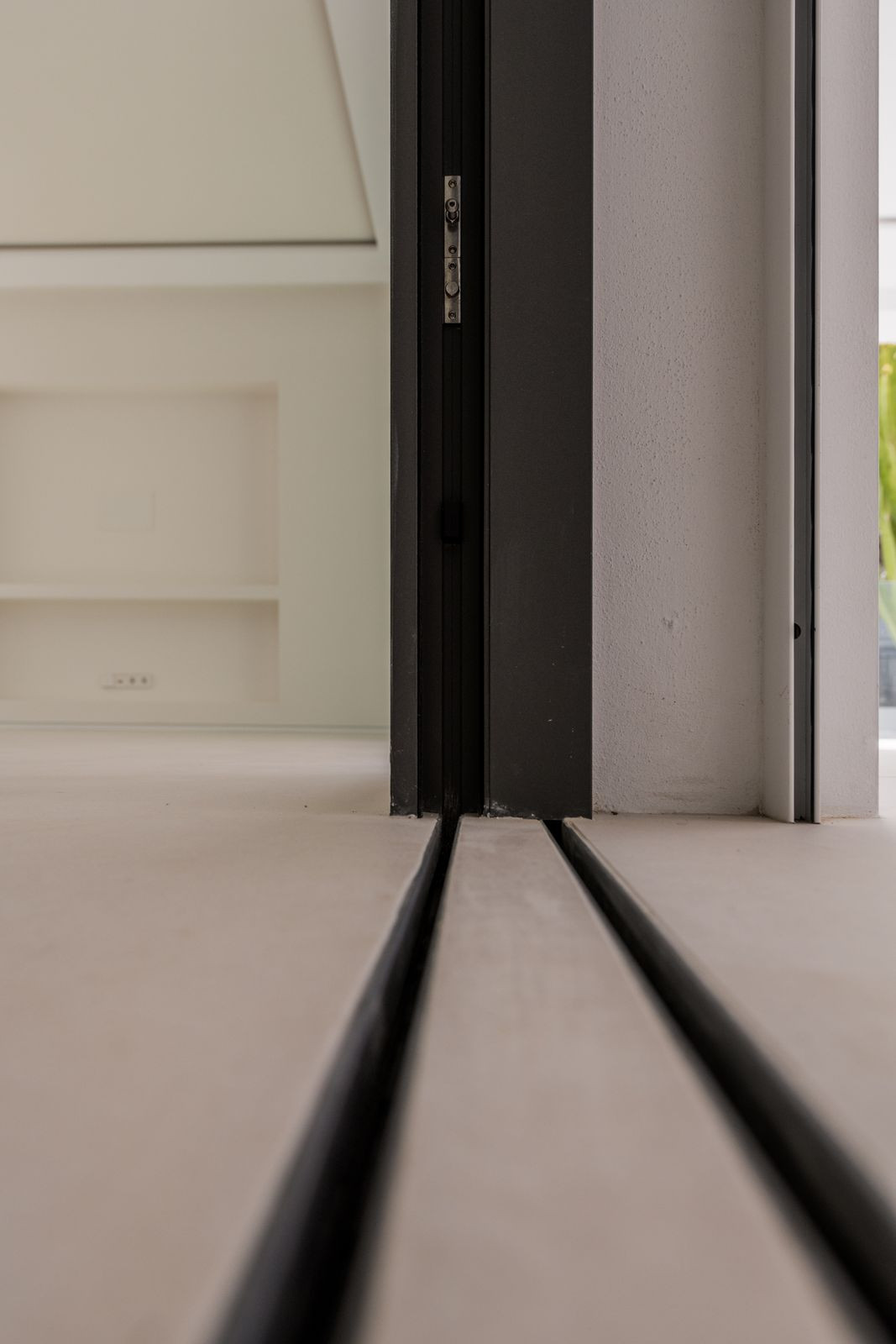 Située sur un terrain de 900 m², la propriété offre 419 m² d'espace construit, avec des intérieurs ouverts inondés de lumière naturelle grâce à des fenêtres minimalistes du sol au plafond.