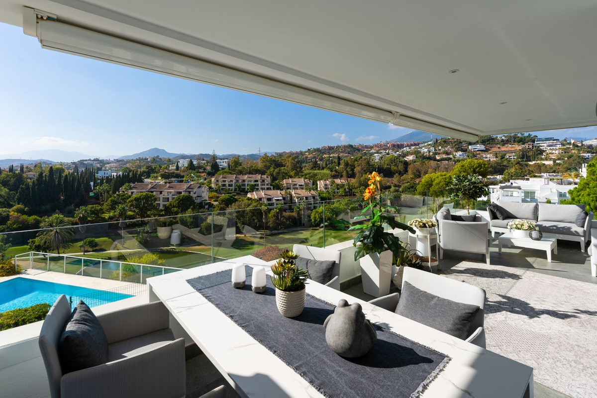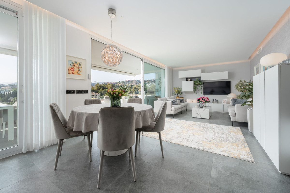 The exclusive Urbanización Le Caprice in the coveted La Quinta area of Benahavís offers an elegant apartment (built in 2020), which combines modern design, high-quality materials and Mediterranean charm into a stylish residential concept.