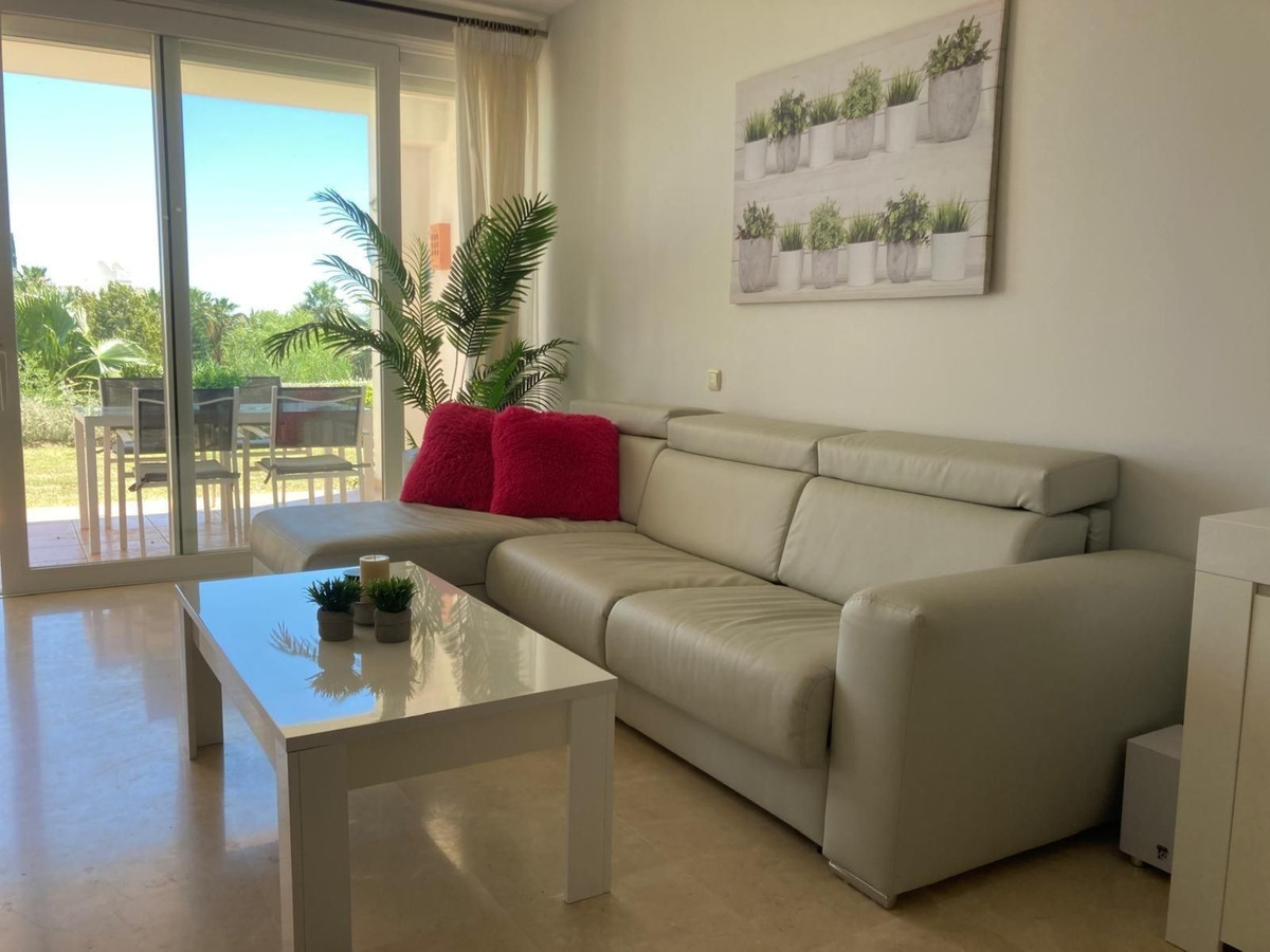 Beautiful apartment in Casares Costa with two bedrooms and two bathrooms, where you can enjoy the morning sun on the wonderful south-facing garden terrace overlooking the beautiful palm grove and the sea in the distance. Located in a spectacular complex with three swimming pools, a beautiful golf course, and the fantastic turquoise lagoon with its pearly white sand beach, where you can practice canoeing, surfing, fitness and much more. A modern apartment with air conditioning, a fully equipped kitchen and a cozy living room with direct access to the terrace in a unique and exclusive complex only a short distance from Marbella and Estepona. Parking and storeroom are included on the price.