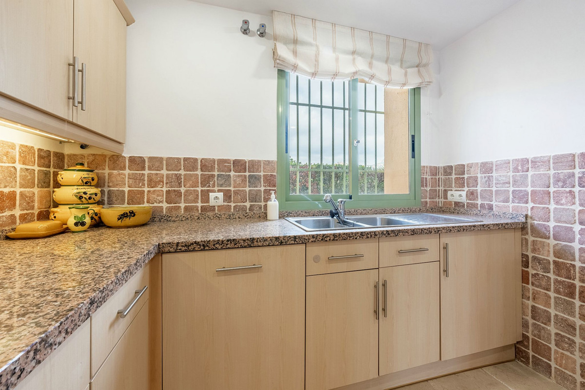 Outside, the cozy covered terrace is ideal to enjoy the Mediterranean climate year-round. From the private garden, you can access one of the three community pools directly — a feature that adds both convenience and exclusivity.