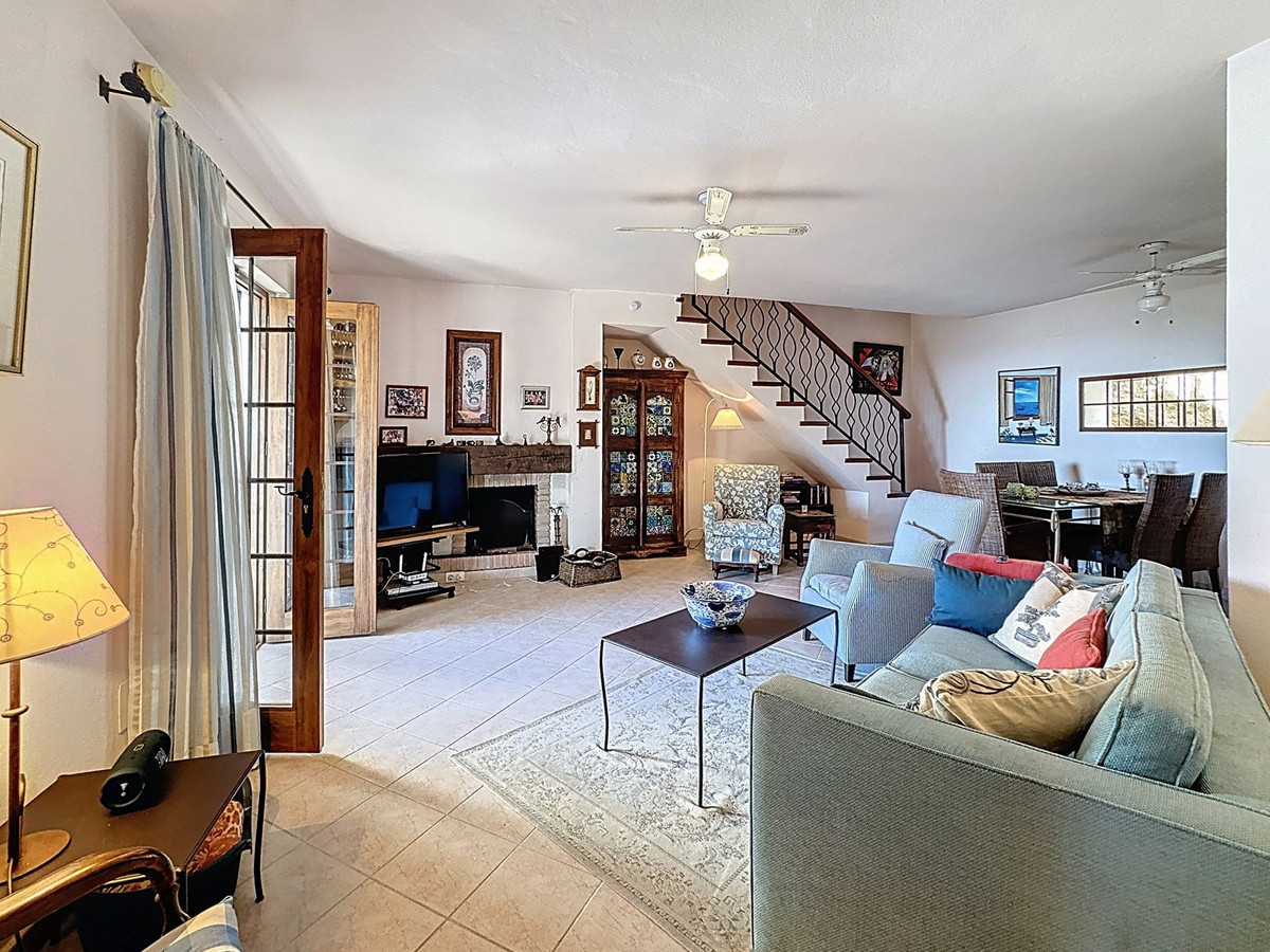 Filled with natural light, the property offers stunning panoramic views of the Mediterranean Sea and the surrounding mountains.