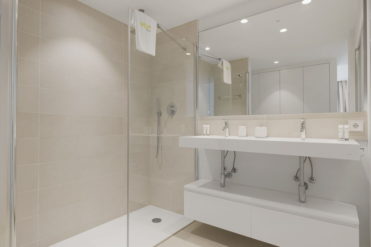 The apartment features 2 spacious bedrooms, 2 modern bathrooms , and a generous 51 m² terrace with breathtaking views of the sea and the resort .