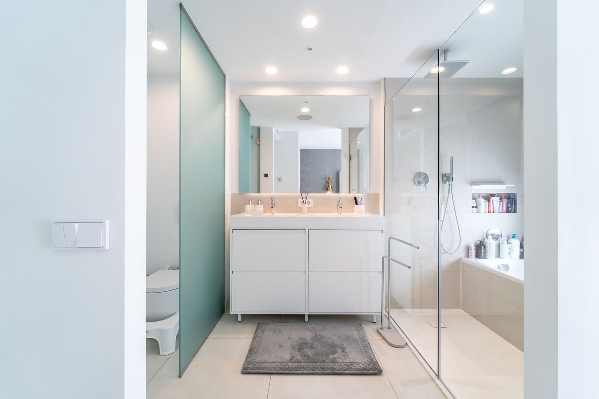 Élégant appartement exposé plein sud, situé dans la prestigieuse urbanisation d'Higuerón Ouest. Il comprend 3 chambres, 2 salles de bains, un vaste séjour/salle à manger, une cuisine américaine entièrement équipée avec électroménager BOSCH, une buanderie avec lave-linge/sèche-linge, et une grande terrasse de 26 m² offrant une vue panoramique imprenable sur la mer. La suite parentale dispose d'un dressing, d'une salle de bains ouverte et d'un accès à une petite terrasse. L'appartement est équipé de la climatisation réversible, d'un interphone vidéo, d'un système domotique, de placards intégrés dans toutes les chambres et le séjour, d'une pré-installation pour alarme et d'un chauffage au sol dans les salles de bains. Deux places de parking et un cellier sont inclus.