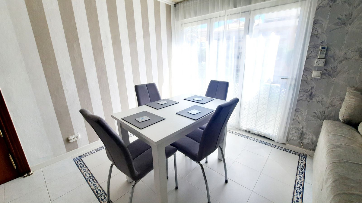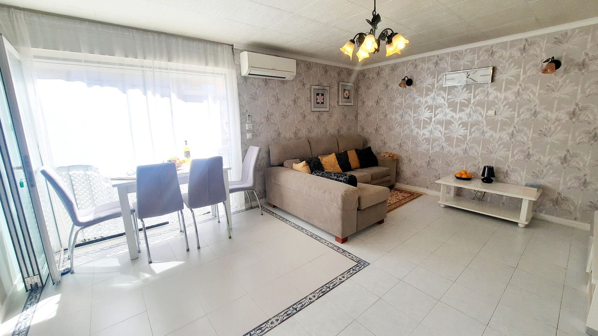 Emplacement idéal ! Appartement au dernier étage à vendre dans l'une des principales avenues de Fuengirola, très ensoleillé et lumineux. Il dispose d'un grand solarium commun avec pergola, barbecue, coin repas et transats, accessible aux voisins à tout moment. La propriété a été rénovée avec du parquet neuf dans la chambre, une nouvelle salle de douche et un salon-salle à manger ouvert avec balcon. Il y a un magnifique solarium commun. Deuxième étage sans ascenseur. Climatisation et volets électriques dans le salon. Idéal pour les vacances.