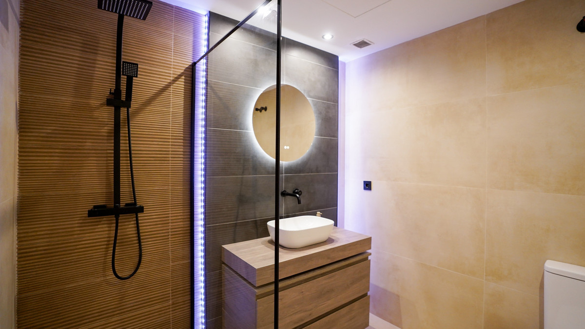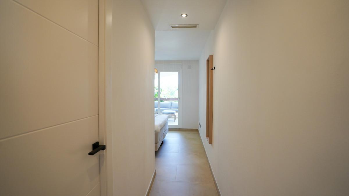 L'appartement dispose de deux chambres spacieuses et de deux salles de bains modernes et élégantes, toutes récemment rénovées selon les normes les plus élevées. Le salon et la salle à manger ouverts s'ouvrent sur une terrasse privée couverte avec vue paisible sur le jardin et la piscine, idéale pour dîner en plein air ou se détendre au soleil. Le double vitrage de haute qualité, la climatisation et un système d'alarme moderne assurent confort et sécurité tout au long de l'année, tandis que les placards intégrés offrent de nombreux rangements.
