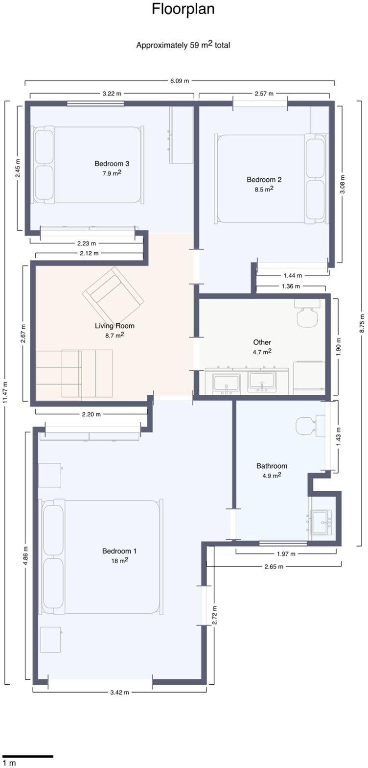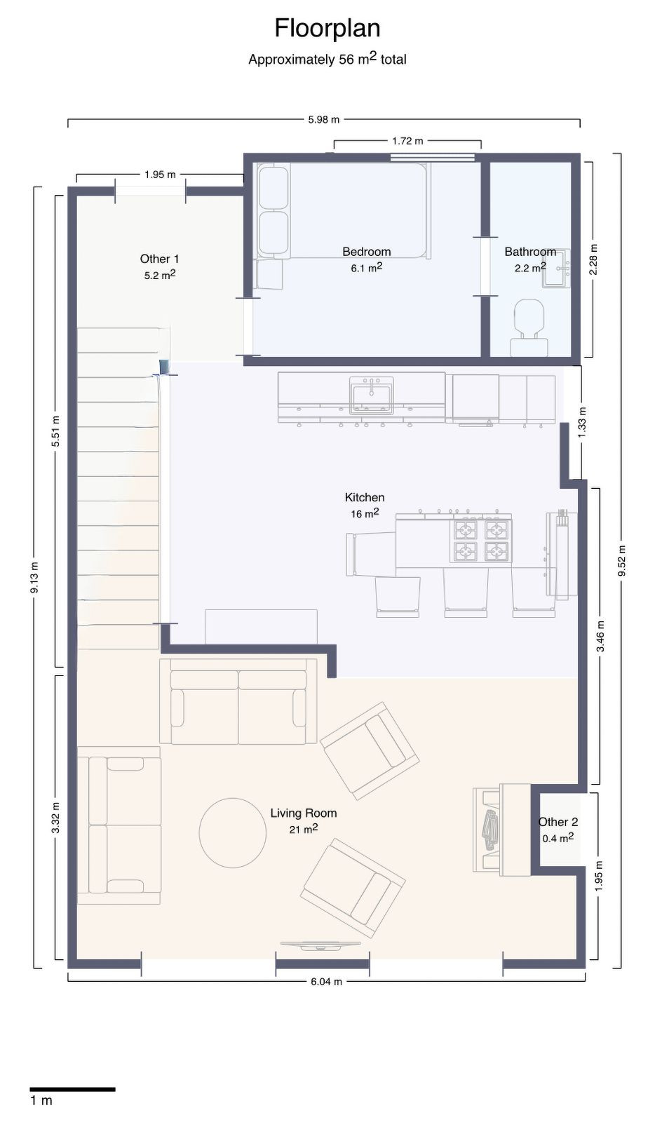 The property includes four bedrooms and three bathrooms, with three bedrooms located on the upper floor and the fourth on the entrance level, perfect for guests or as a home office.