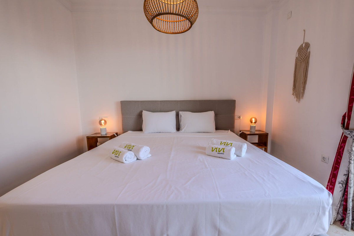 La chambre principale, à la fois spacieuse et élégante, offre un accès direct à la terrasse, un grand dressing et une luxueuse salle de bains attenante avec douche à l'italienne et baignoire à double pommeau de douche. Les deux autres chambres, de belles dimensions, sont dotées de placards intégrés et partagent une salle de bains avec une grande douche à l'italienne.