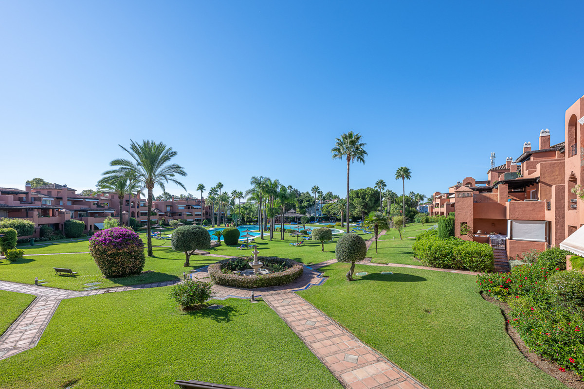 Ce superbe appartement se situe dans l'un des complexes résidentiels les plus prestigieux et exclusifs de Guadalmina Baja. Orienté plein sud, il offre une vue imprenable sur les luxuriants jardins tropicaux communs et sur la vaste piscine aux allures de plage.