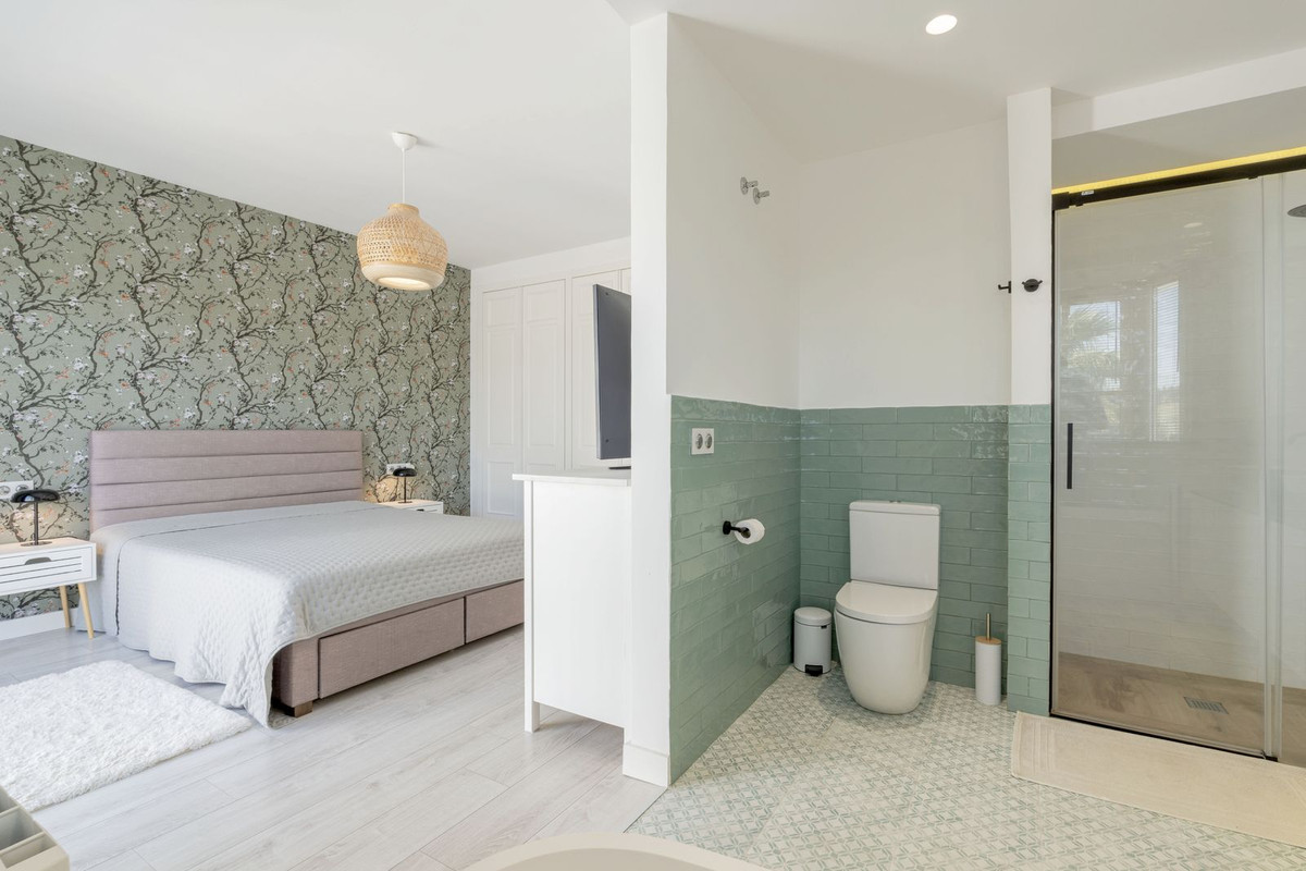 À l'intérieur, la villa offre 4 chambres spacieuses et 3 salles de bains (dont une attenante), ainsi qu'un espace de vie lumineux et accueillant qui s'ouvre sur des terrasses orientées à l'ouest, où vous pourrez admirer les couchers de soleil à couper le souffle de Marbella.