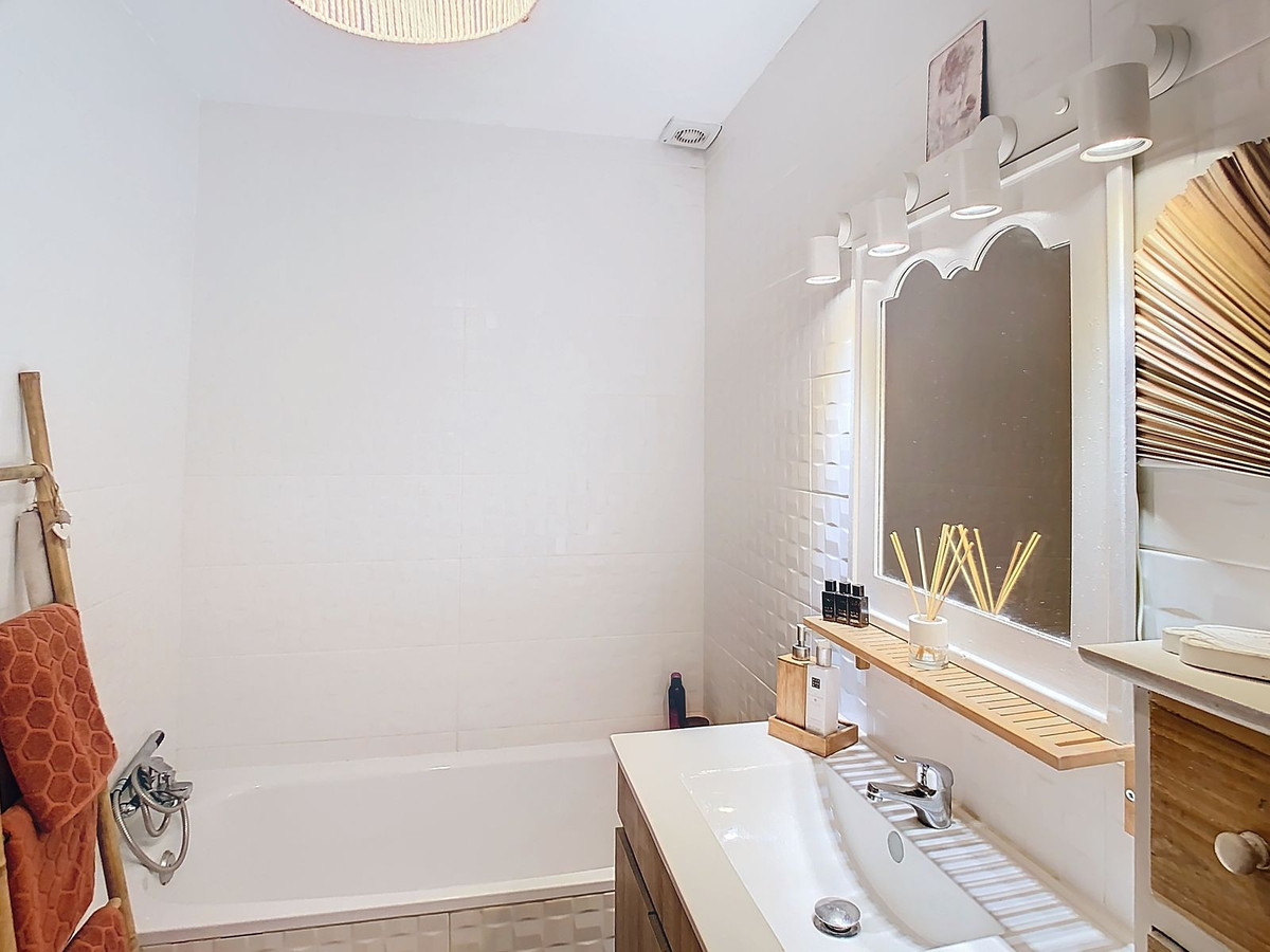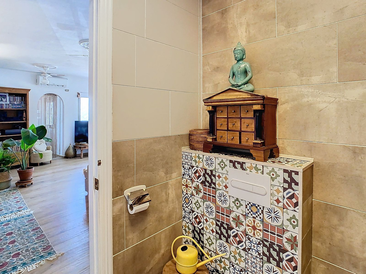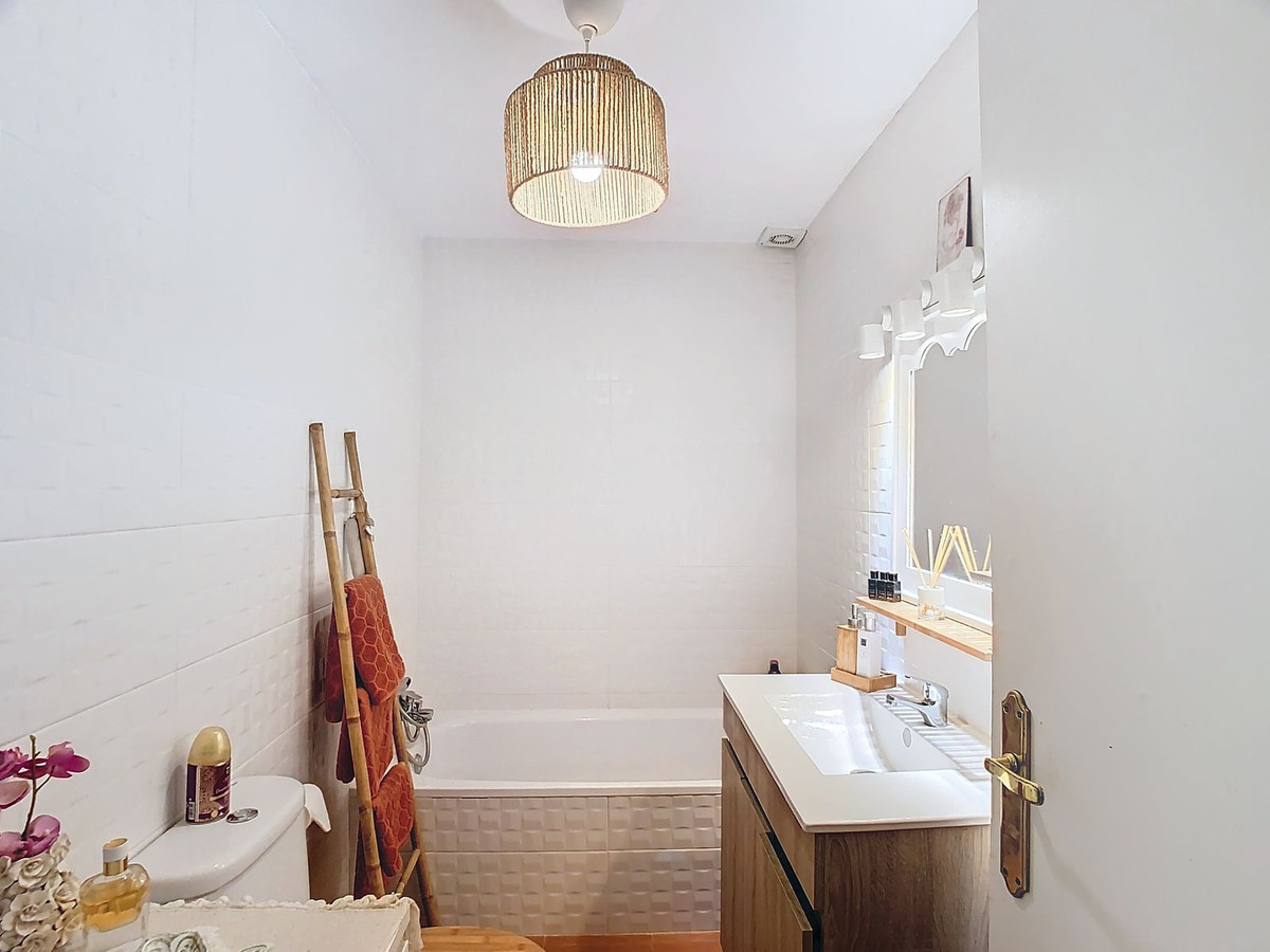 This townhouse is accessed via a few wide steps and has parking space both on the street and in 2 large public car parks. As soon as you reach the house, you will see the storage area of approximately 10 m2. A few stairs take you to the first terrace area. This property offers modern comforts, including new electrical wiring on the ground floor, providing safety and convenience. Elegant new flooring adorns the entire ground floor and terrace, perfect for relaxing. The upper floor features beautiful new ceramic flooring, harmoniously integrated into the space.