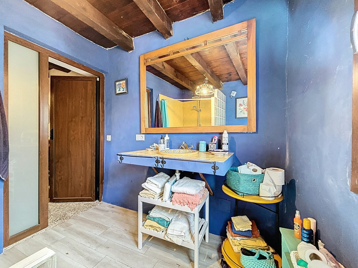 Discover the charm of countryside living with this spacious country house in the hills of Comares. This unique property is one house with two independent living spaces, offering flexibility for families, guests, or rental opportunities. The main living area on the ground floor features five bedrooms, two bathrooms, a kitchen, and a spacious living/dining room. Large windows allow natural light to fill the rooms, creating a warm and inviting atmosphere. Upstairs, the loft apartment includes its own kitchen, living/dining area, bathroom, and one bedroomperfect for guests or use as a rental unit. The ground floor also has two separate entrances, making it possible to divide the space into two apartments: one with two bedrooms, and the other with three. An ideal option for multi-family use or income potential. Outside, youll find a private pool, barbecue area, covered terrace, and plenty of space to relax and enjoy the peaceful mountain views. Additional features include a storage room, laundry room, air conditioning, and a chimney for year-round comfort. Whether you're looking for a family home, a tranquil holiday retreat, or an investment in rural Andalusia, this property offers endless potential in a stunning setting. Contact us today to arrange your viewing and experience the beauty of Comares. We are pleased to be able to present this dream property to you soon, either personally or via virtual viewing. Because this world is unique - just like our Axarquía. In Andalusia. On the Costa del Sol. Here, on the sunny side of life...