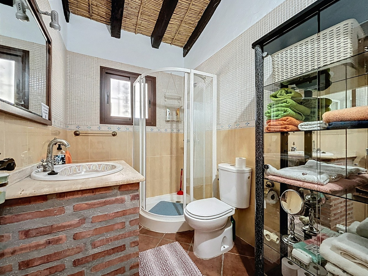 Nichée dans les douces collines en contrebas de Cómpeta, avec une vue imprenable sur les montagnes environnantes, cette charmante maison de campagne de style andalou traditionnel offre un havre de paix aux amoureux de la nature et à ceux qui recherchent la tranquillité. De plain-pied, elle comprend un salon-salle à manger convivial avec une cuisine attenante typiquement andalouse. Trois chambres, une salle de bains et des toilettes séparées offrent un espace confortable pour la famille ou les amis. Le chauffage au sol et la climatisation dans les pièces principales garantissent un confort optimal toute l'année, que ce soit lors des chaudes journées d'été ou des fraîches nuits d'hiver. À l'extérieur, une vaste terrasse couverte invite à la détente, tandis que la piscine rafraîchissante, les toilettes supplémentaires et une petite cuisine d'été intégrée créent un cadre idéal pour profiter du plein air et recevoir des invités. La propriété est implantée sur un terrain naturel arboré de divers arbres fruitiers, offrant un magnifique écrin pour la vie sous le soleil du sud. Une maison authentique pleine de caractère et de confort moderne, parfaite comme résidence secondaire ou principale dans l'une des régions les plus pittoresques d'Andalousie. Nous serons ravis de vous présenter prochainement cette propriété de rêve, en personne ou par visite virtuelle. Parce que ce monde est unique, tout comme notre Axarquía. En Andalousie. Sur la Costa del Sol. Ici, du bon côté de la vie…