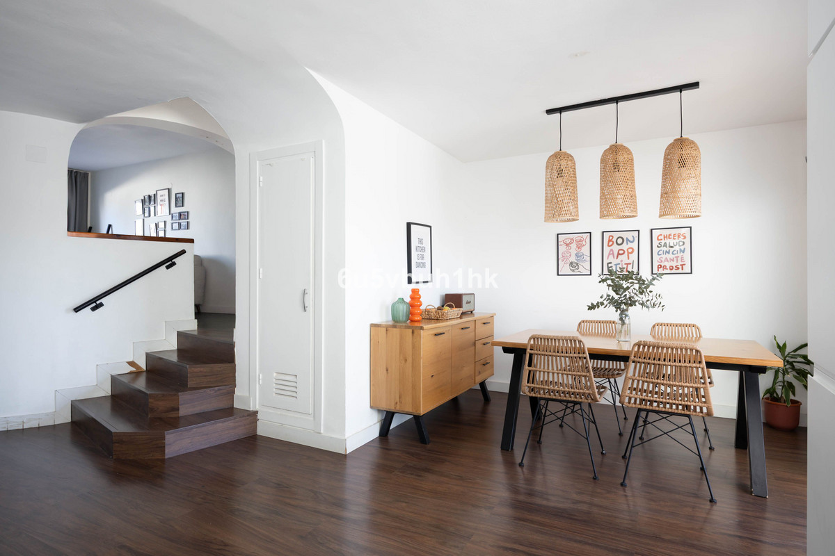 Maison de ville spectaculaire à Campo Mijas. Située dans un complexe résidentiel avec piscine, court de tennis et magnifiques jardins, cette propriété offre le meilleur de Campo Mijas : confort, intimité et espaces extérieurs pour toute la famille. Cette maison de ville de deux étages, orientée sud-ouest, offre une vue imprenable sur la montagne et la mer. La terrasse arrière, accessible depuis la cuisine, dispose d'un superbe espace barbecue, tandis que la terrasse principale, attenante au salon, est idéale pour se détendre et profiter du soleil et des couchers de soleil. Rez-de-chaussée : cuisine ouverte avec coin repas, salon à double hauteur, toilettes invités, buanderie avec chauffe-eau, espace buanderie et plusieurs espaces de rangement. Premier étage : Trois chambres, dont la chambre principale avec salle de bains privative, et une salle de bains commune pour les autres chambres. La propriété comprend également un garage avec accès direct à la maison, offrant un confort supplémentaire au quotidien. Arrêt de bus à seulement 1 minute, plages de Los Boliches et de Cala de Mijas à 10 minutes en voiture, écoles, supermarchés et centres commerciaux à 6-7 minutes, et parcs à proximité. Une propriété unique qui allie vues imprenables, confort et emplacement idéal – parfaite pour ceux qui recherchent une maison complète sur la Costa del Sol.