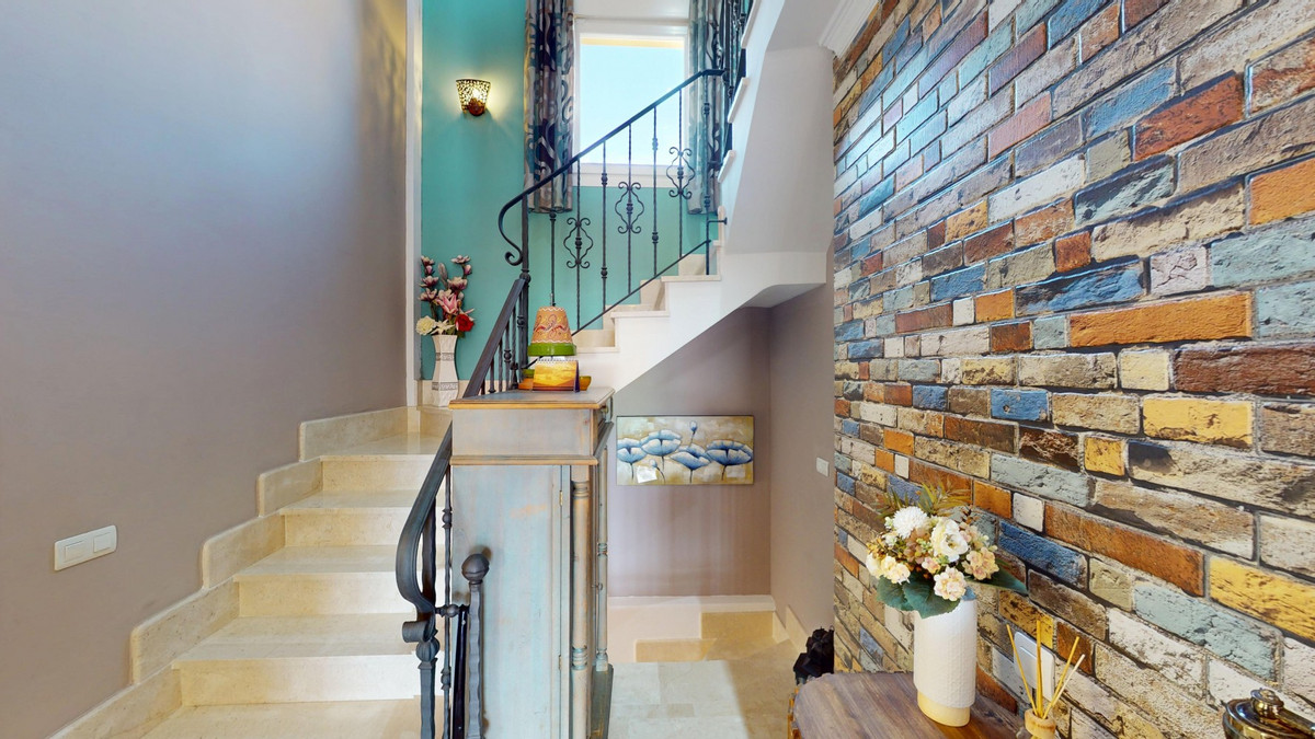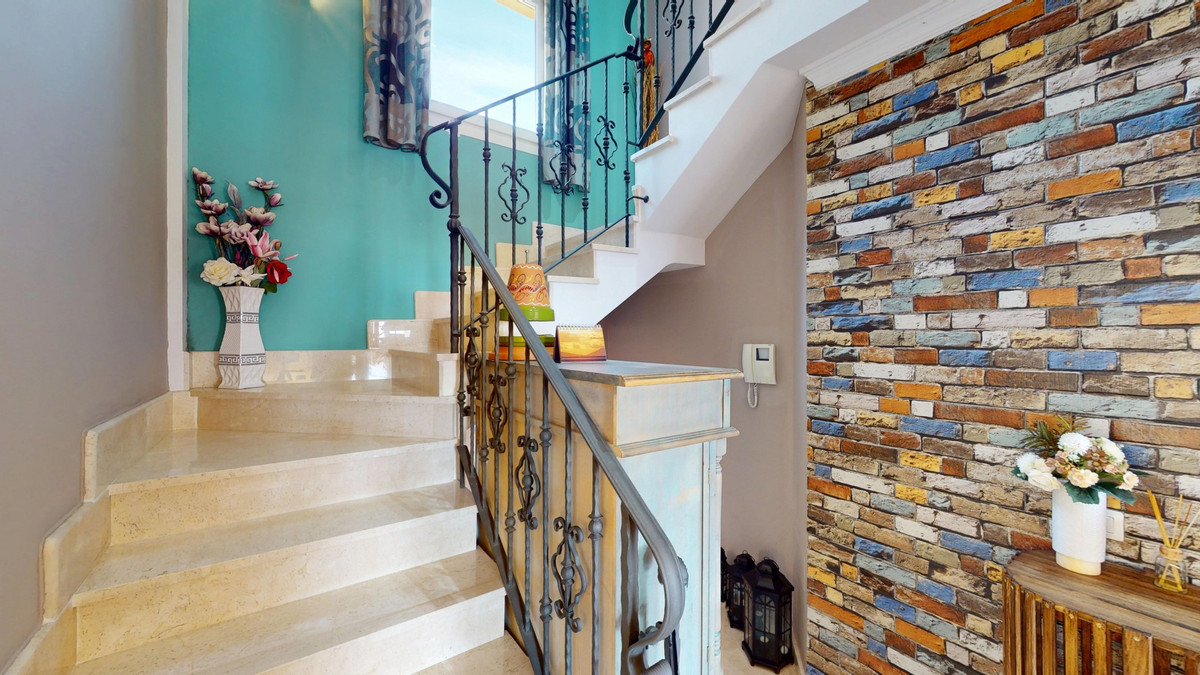 Cette impressionnante propriété de 207 m² à Torrox, près de Malaga, offre un mélange harmonieux d'espace et de confort sur trois niveaux. La maison comprend cinq chambres, dont une spacieuse suite parentale de 13 m², et trois salles de bains élégantes. L'intérieur se caractérise par des espaces lumineux et aérés, empreints d'une touche méditerranéenne contemporaine. De larges baies vitrées coulissantes dans le séjour s'ouvrent sur une terrasse pittoresque, offrant une vue imprenable sur la mer et laissant entrer une abondante lumière naturelle. La cuisine moderne est équipée de meubles en bois clair, d'appareils électroménagers en inox et d'un lave-linge intégré. Les chambres sont décorées avec goût, avec des placards intégrés et des touches de couleur qui dynamisent la palette neutre. Les salles de bains, à la fois modernes et fonctionnelles, sont dotées d'équipements contemporains et de carrelage. La maison dispose de plusieurs espaces de vie, d'une salle à manger séparée et de nombreux rangements, dont une buanderie et un dressing. Dans toute la propriété, des éléments architecturaux tels que des portes cintrées et des ventilateurs de plafond contribuent à son charme méditerranéen. Les espaces extérieurs, terrasses et balcons, offrent des lieux idéaux pour dîner en plein air et se détendre tout en profitant de l'ambiance côtière. Cette maison bien conçue offre un équilibre parfait entre fonctionnalité et style, idéale pour ceux qui recherchent une résidence spacieuse sur la magnifique Costa del Sol. Nous sommes ravis de pouvoir vous présenter prochainement cette propriété de rêve, en personne ou en visite virtuelle. Car ce monde est unique, à l'image de notre Axarquía. En Andalousie. Sur la Costa del Sol. Ici, sous le soleil…