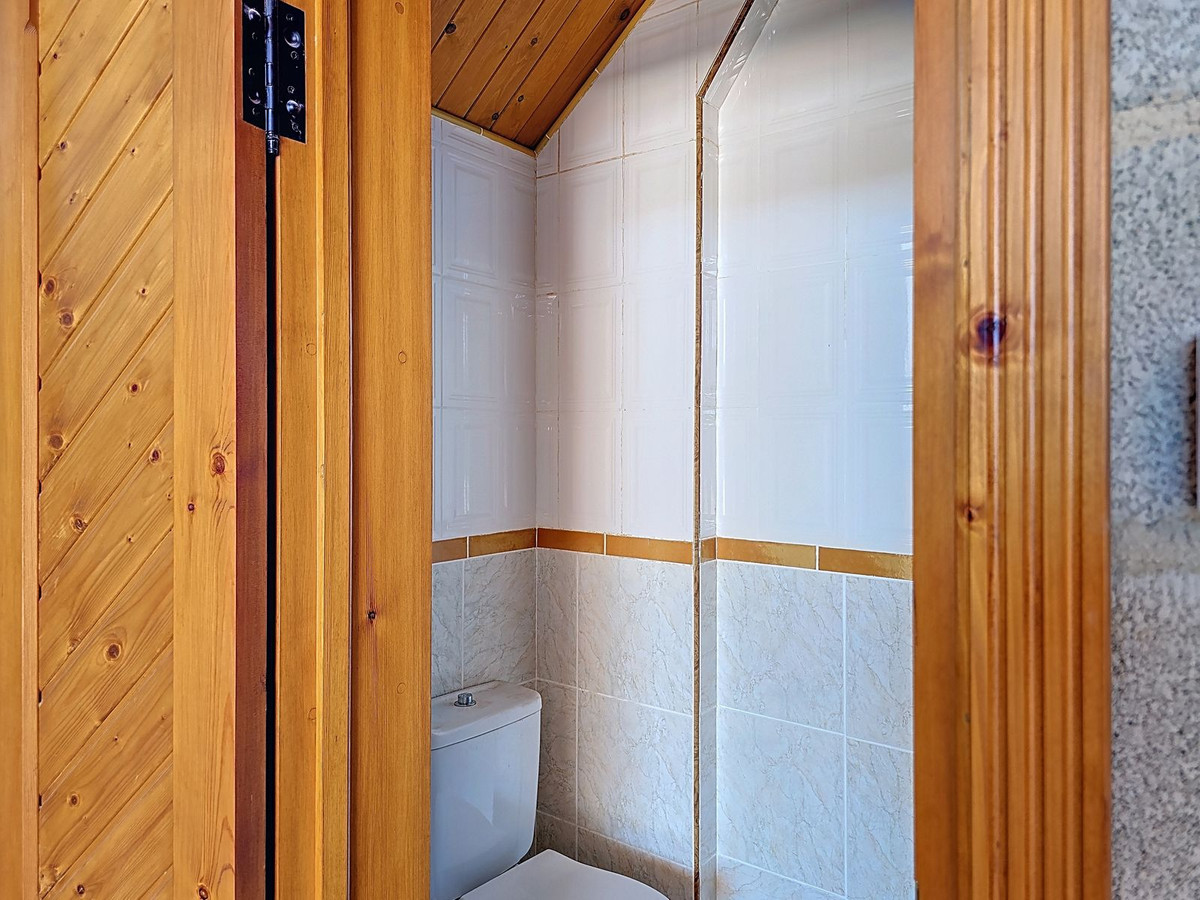 La résidence principale offre trois chambres spacieuses, chacune avec sa propre salle de bains et un accès direct à la terrasse, pour une transition harmonieuse entre intérieur et extérieur. L'espace de vie ouvert se prolonge naturellement vers la terrasse supérieure, un lieu idéal pour recevoir ou simplement se détendre en admirant le paysage montagneux changeant.