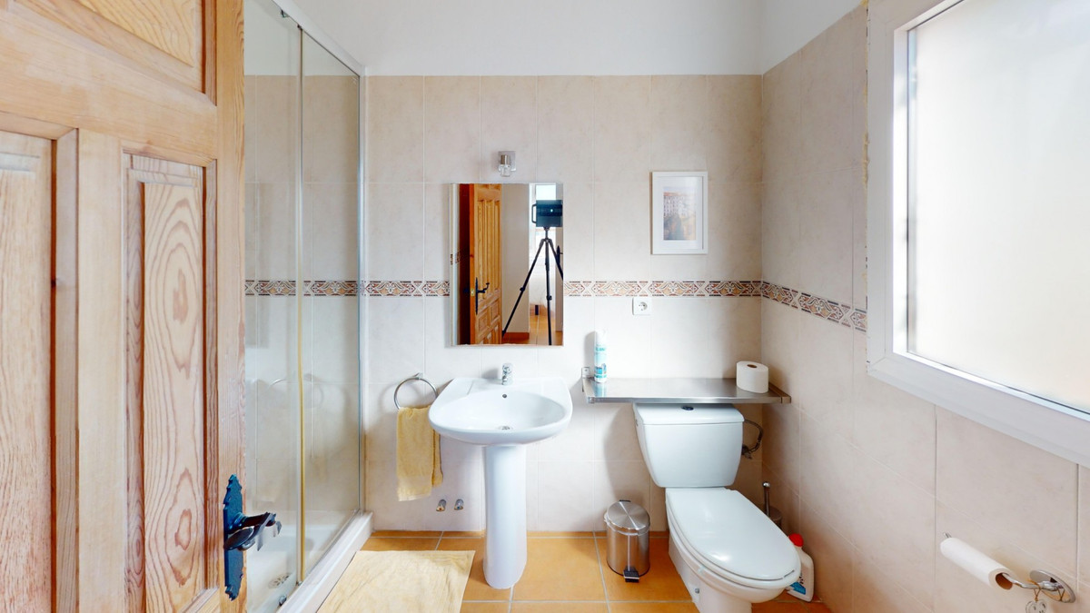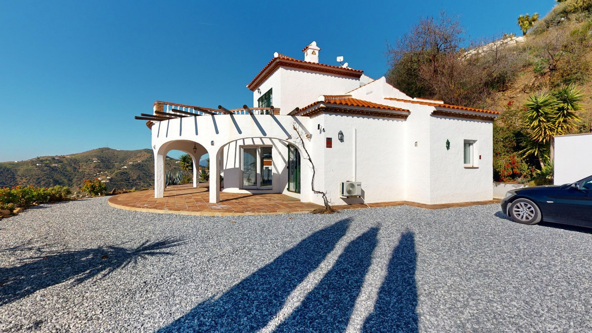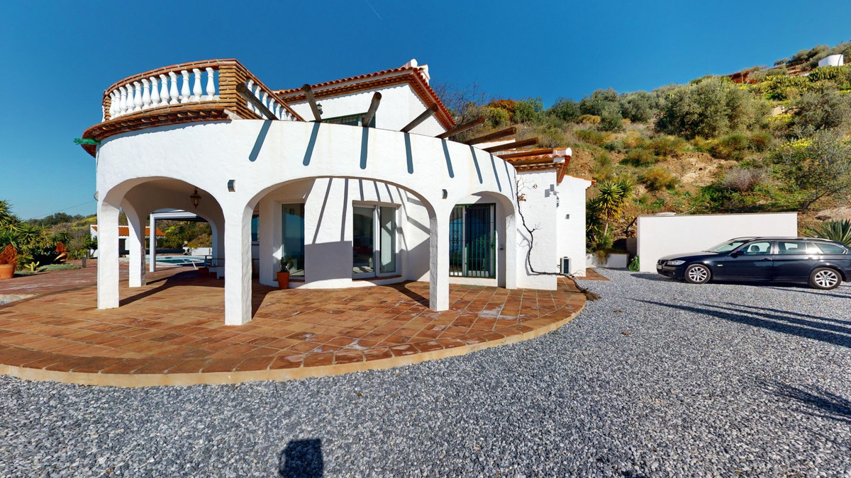 Cette villa récemment rénovée bénéficie d'un emplacement exceptionnel sur le mont Bentomiz à Arenas, à seulement 5 minutes du charmant village d'Arenas et ses maisons blanchies à la chaux, à 20 minutes des plages d'Algarrobo Costa et à 50 minutes de l'aéroport de Málaga. Elle offre un équilibre parfait entre tranquillité et accessibilité. La propriété se distingue par sa luminosité, son design moderne et ses finitions haut de gamme. Elle comprend un vaste séjour/salle à manger ouvert et une cuisine moderne entièrement équipée avec des appareils haut de gamme, dont une plaque de cuisson au gaz, un four, un lave-vaisselle et un réfrigérateur-congélateur intégré. La salle à manger s'ouvre sur une terrasse couverte, idéale pour se détendre ou prendre ses repas en plein air. La villa dispose de 3 chambres et 3 salles de bains, dont deux privatives. Au rez-de-chaussée, une chambre possède une salle de bains privative avec douche, WC et lavabo, ainsi que la climatisation. La deuxième chambre dispose d'une salle de bains séparée avec baignoire, douche, WC et lavabo. La suite parentale, située à l'étage, est climatisée et dispose d'une salle de bains privative avec douche, WC et lavabo, d'un dressing et d'un accès direct à une terrasse sur le toit offrant une vue panoramique imprenable et des couchers de soleil inoubliables. Toutes les chambres et le salon sont équipés de ventilateurs de plafond pour un confort optimal en été. L'espace extérieur comprend une piscine d'eau salée chauffée automatisée de 9,5 mètres sur 5 et un système d'arrosage automatique pour un jardin impeccable. La propriété bénéficie également d'un puits commun et d'une citerne d'une capacité de 12 000 litres. Plusieurs terrasses ombragées agrémentent l'espace extérieur, dont une peut être fermée par un store rétractable. La villa est dotée d'équipements de pointe, notamment 8 panneaux solaires avec un onduleur de 6 kW, le chauffage central, l'eau chaude sanitaire par chaudière à gaz, des fenêtres et portes à double vitrage avec système anti-effraction, un système de sécurité complet avec surveillance 24h/24 et 7j/7 et un système domotique contrôlant l'éclairage, la pompe à chaleur, les panneaux solaires et le niveau d'eau de la citerne. Cette propriété allie harmonieusement confort, style et durabilité dans un cadre exceptionnel. Contactez-nous dès aujourd'hui pour plus d'informations ou pour programmer une visite, en personne ou virtuelle.